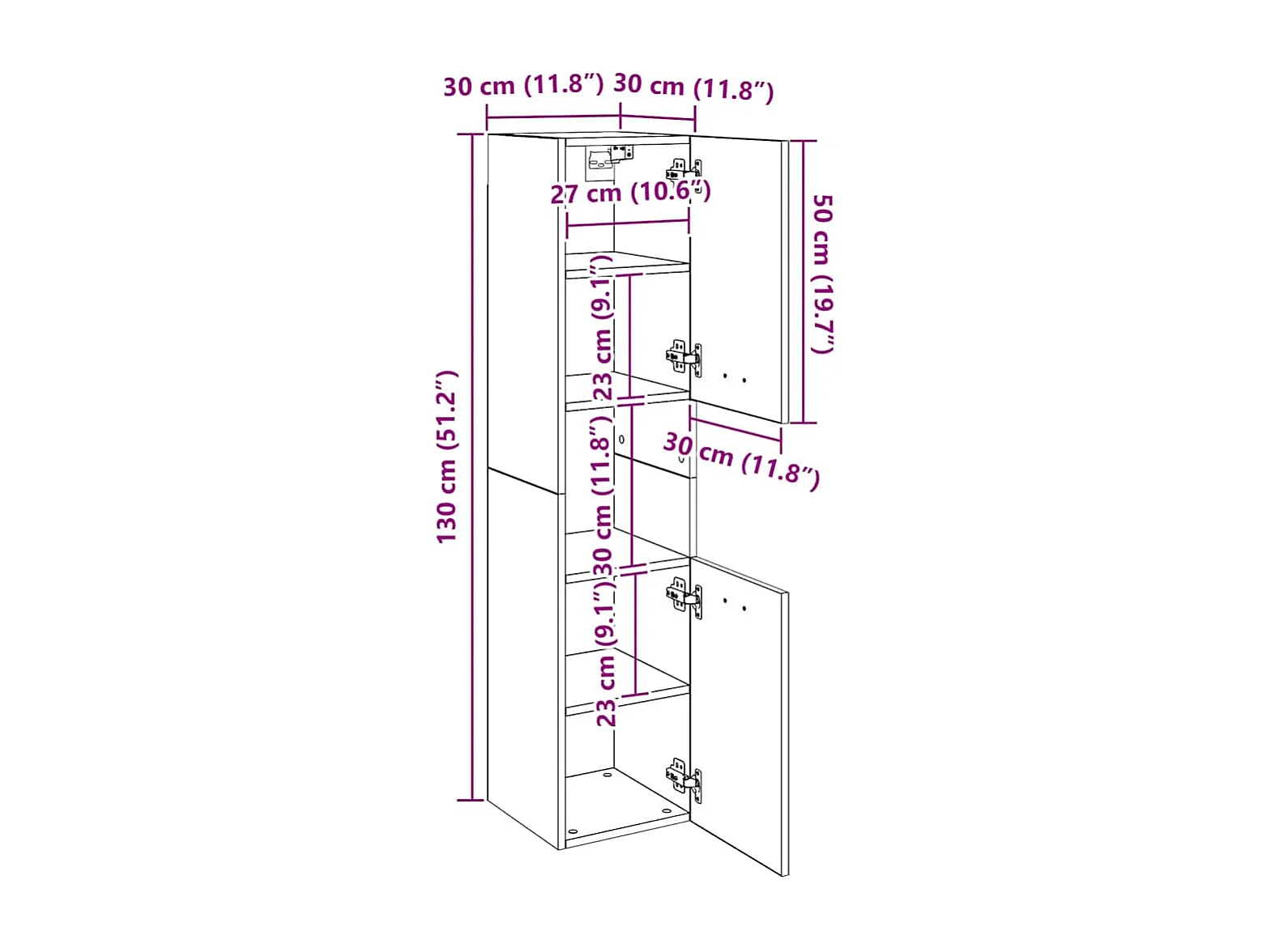 Armoire de salle de bain Noir 30x30x130 cm Bois d’ingénierie