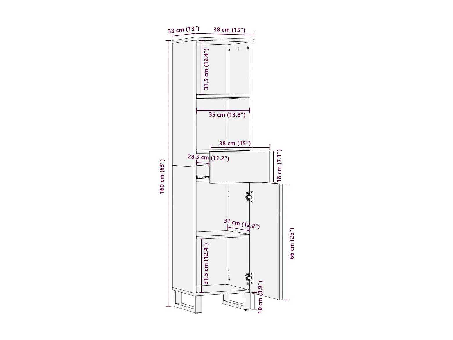 Armoire de salle de bain noir 38x33x160 cm bois massif manguier