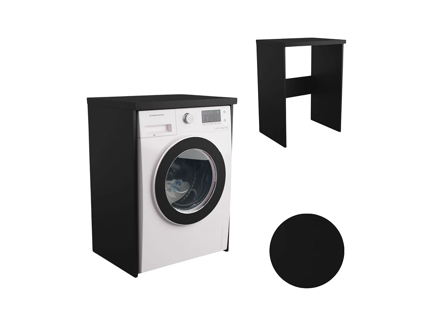 Armoire de salle de bain pour machine à laver et sèche-linge en noir. Idéal pour ranger vos appareils électroménagers.