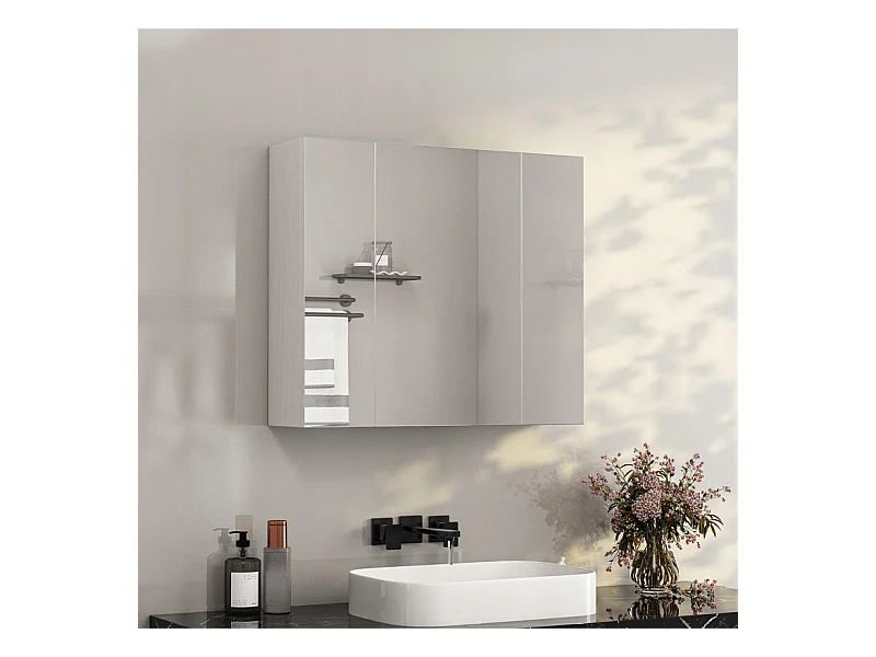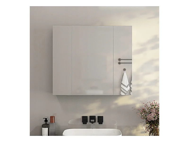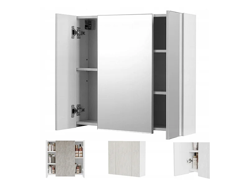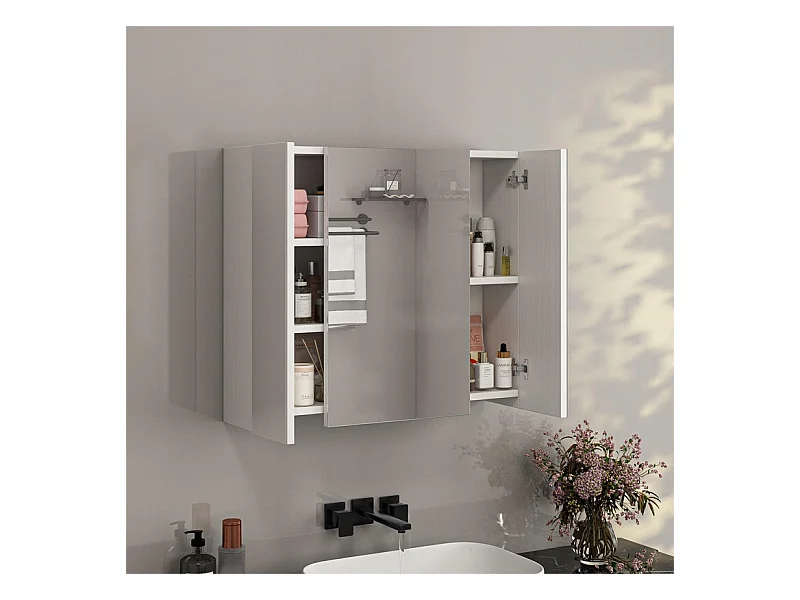 ARMOIRE DE SALLE DE BAIN SUSPENDUE MURALE AVEC MIROIR EN TROIS PARTIES MODERNE 60 CM
