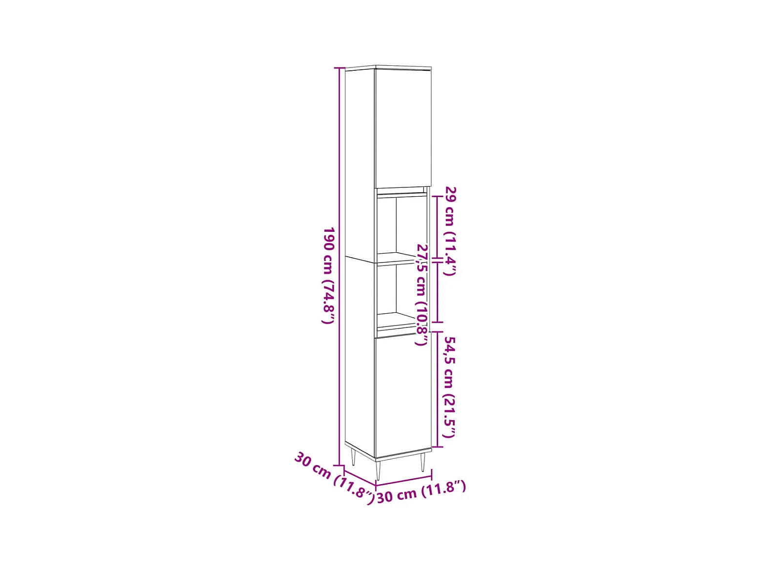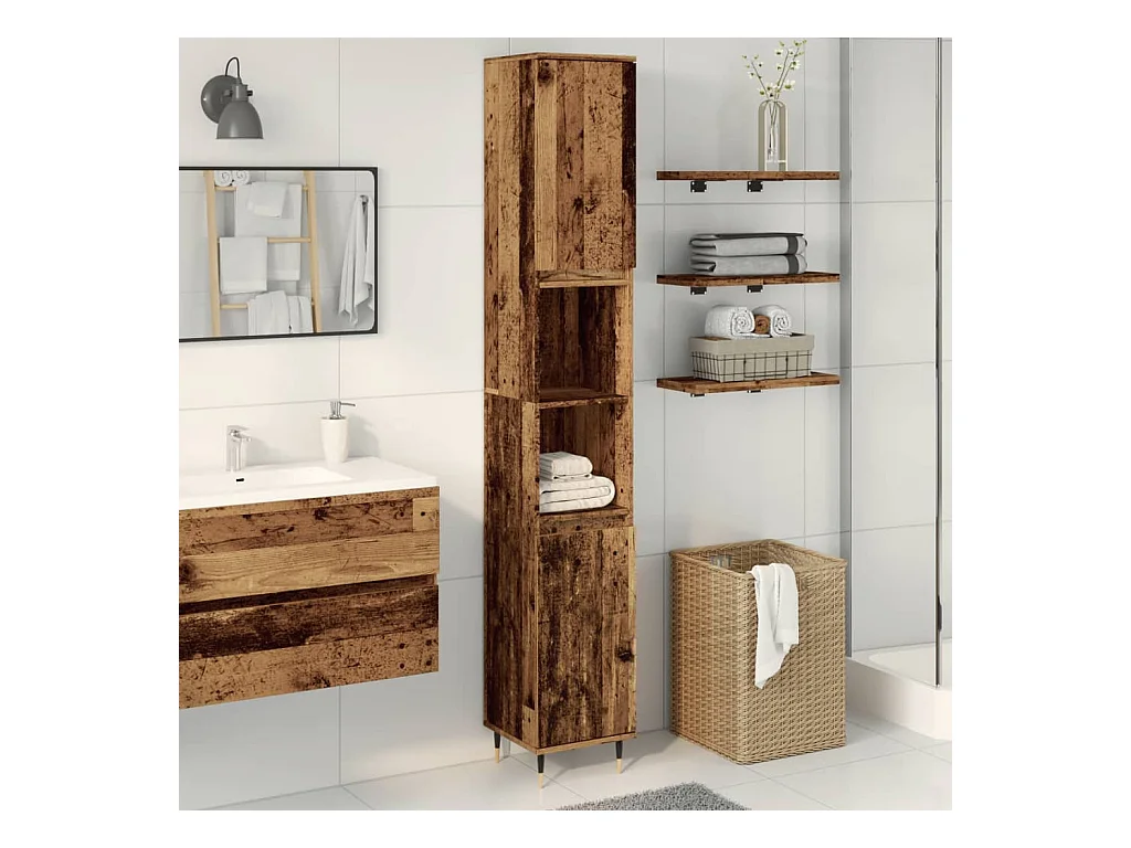 Armoire de salle de bain vieux bois 30x30x190cm bois ingénierie