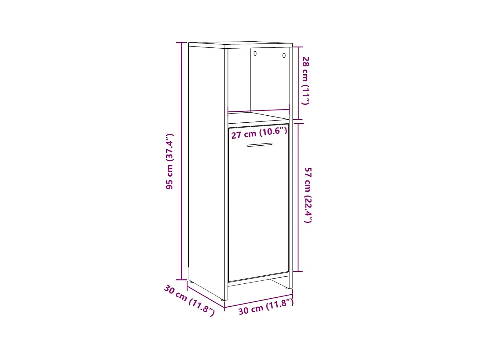 Armoire de bain chêne artisanal 30x30x95 cm bois d'ingénierie