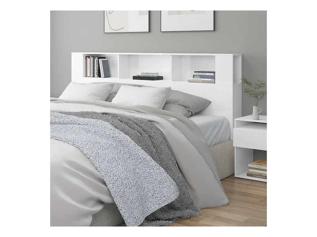 Armoire de tête de lit Blanc brillant 200x18,5x104,5 cm POI70581 BonneVie Meuble