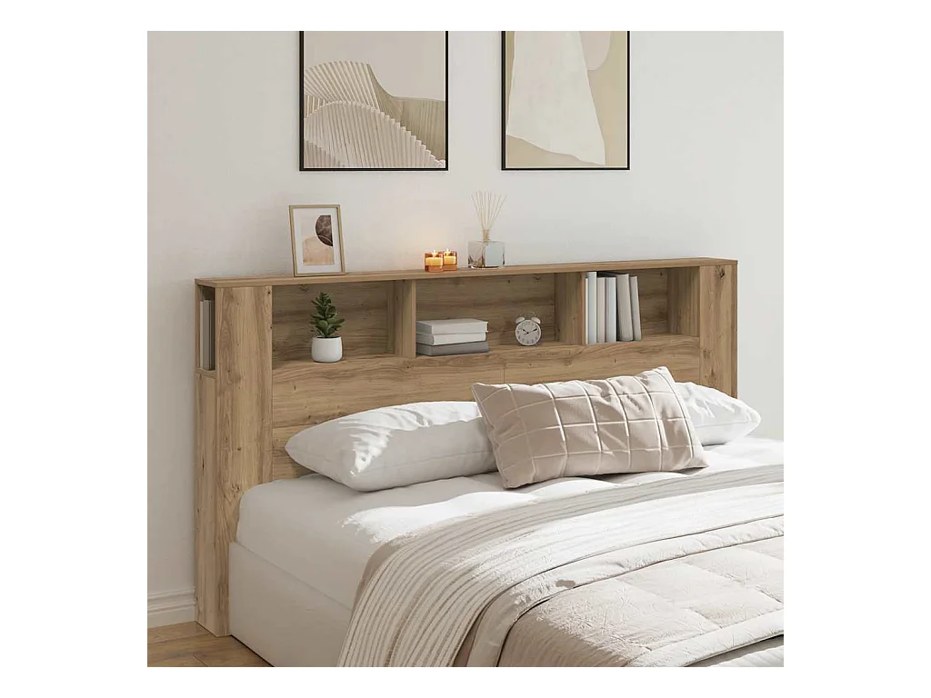 Tête de lit de rangement avec étagère chêne artisanal 200 cm