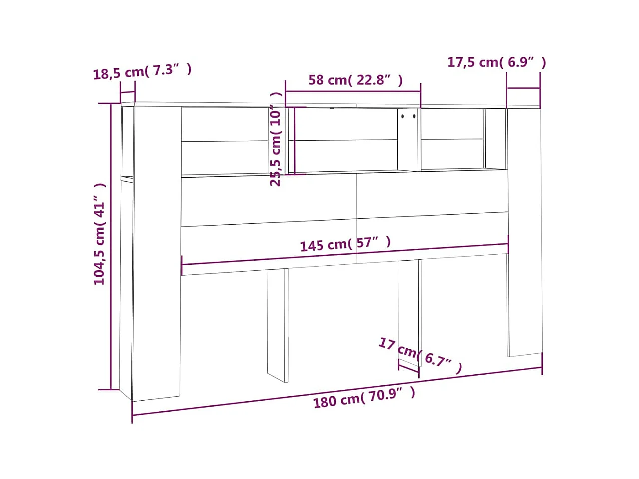 Armoire de tête de lit Chêne fumé 180x18,5x104,5 cm