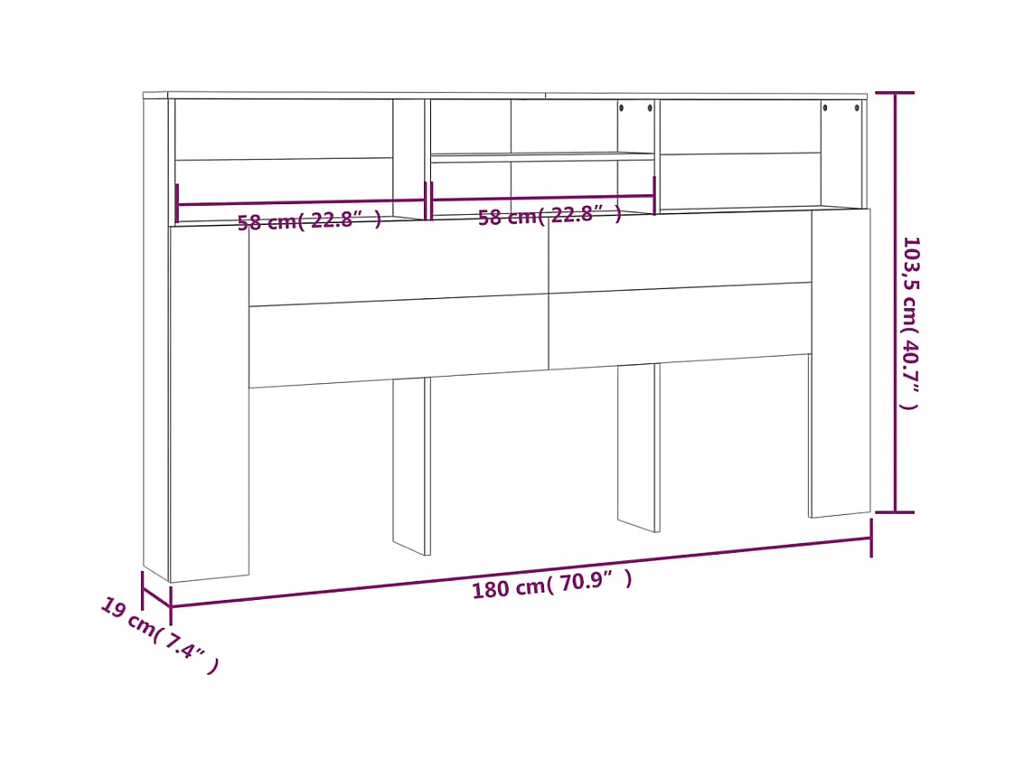 Armoire de tête de lit Sonoma gris 180x19x103,5 cm