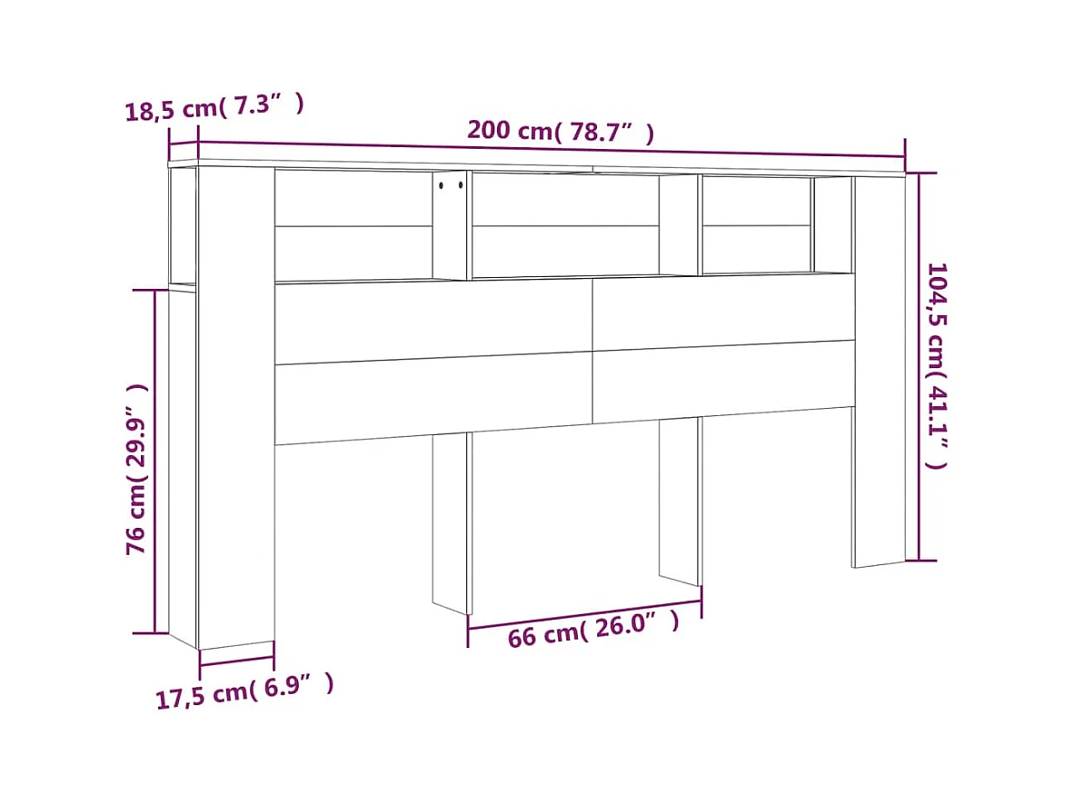 Armoire de tête de lit Sonoma gris 200x18,5x104,5 cm