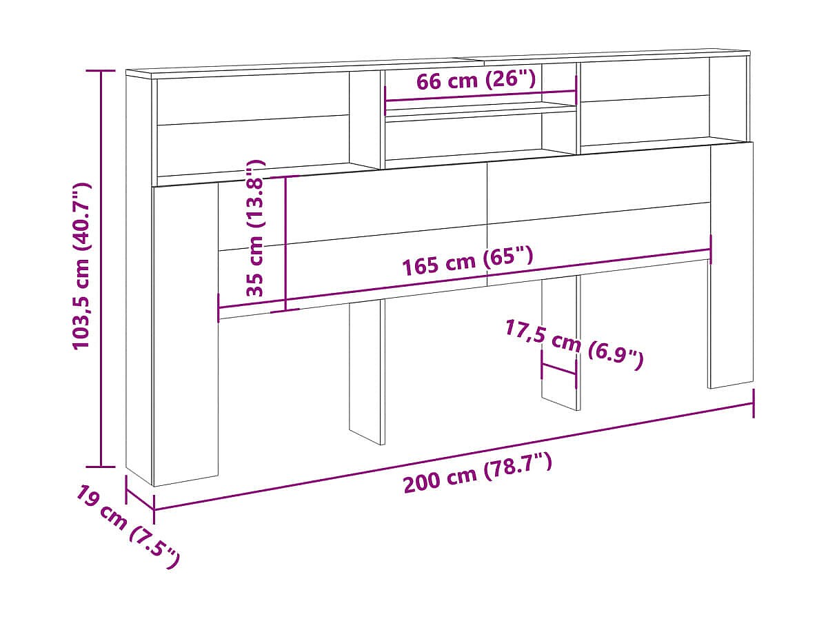 Tête de lit de rangement avec étagère chêne artisanal 180 cm