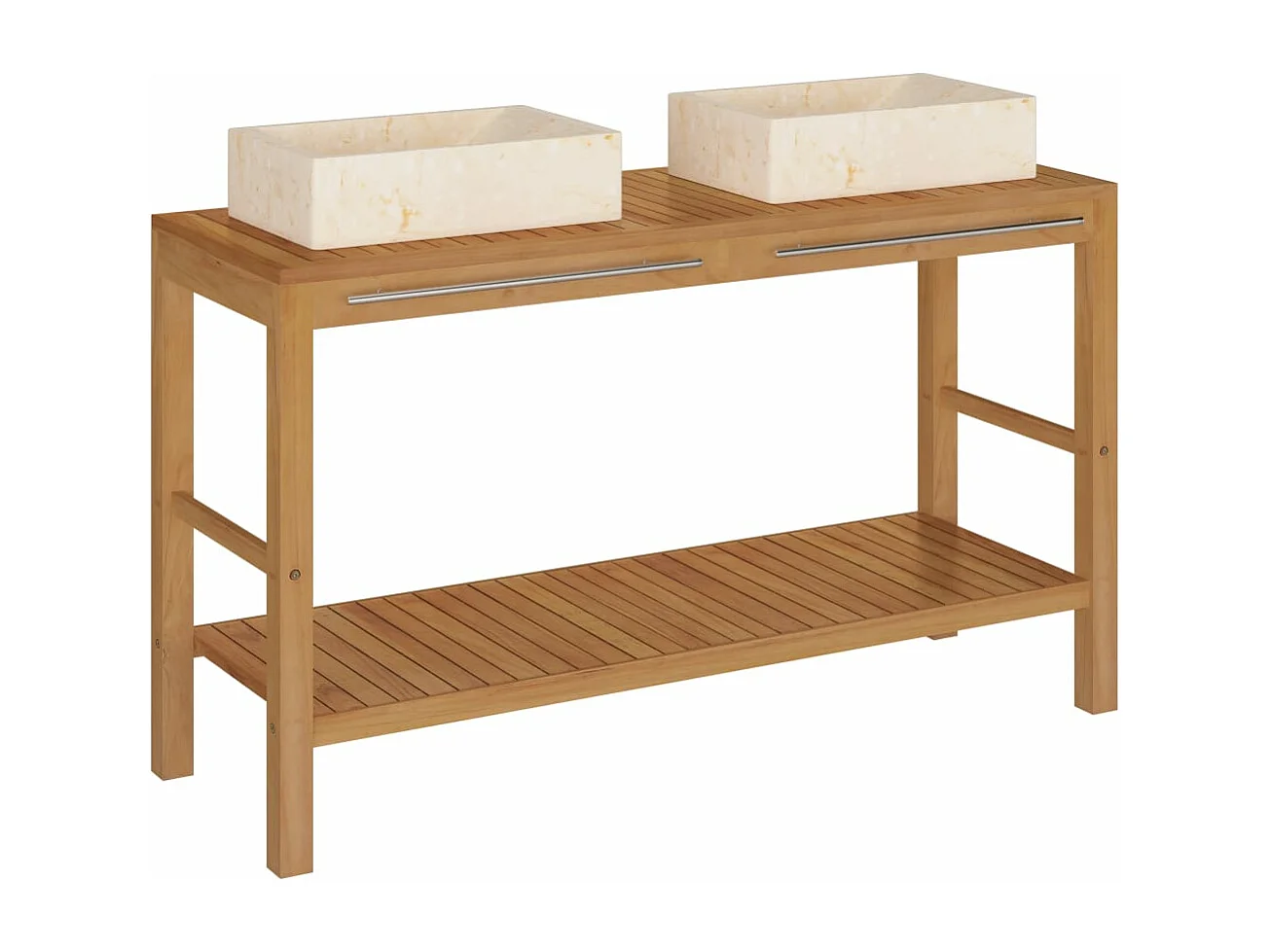 Armoire de toilette en teck solide avec lavabos en marbre Crème