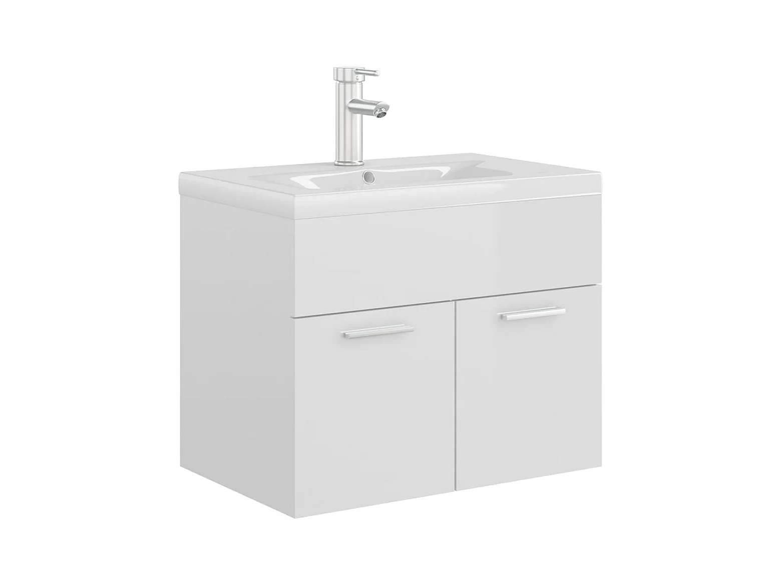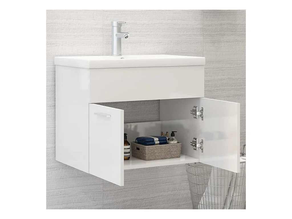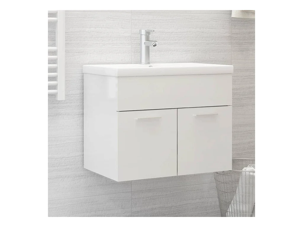 Armoire d'évier avec lavabo intégré Blanc brillant Aggloméré