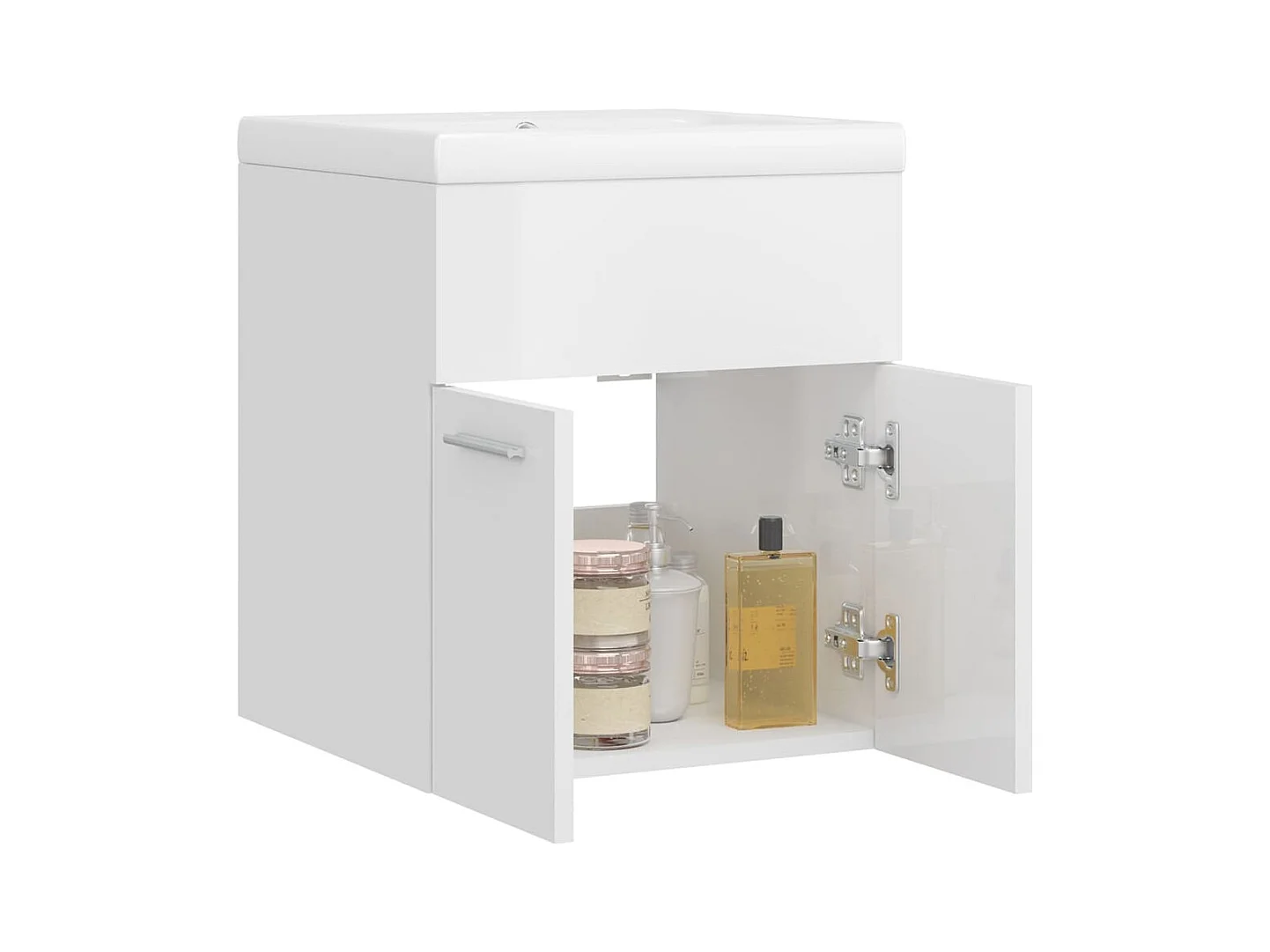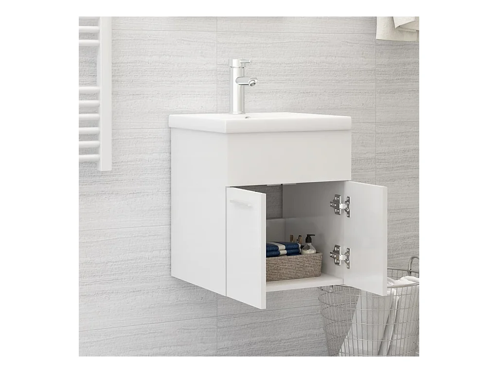 Armoire d'évier avec lavabo intégré Blanc brillant Aggloméré