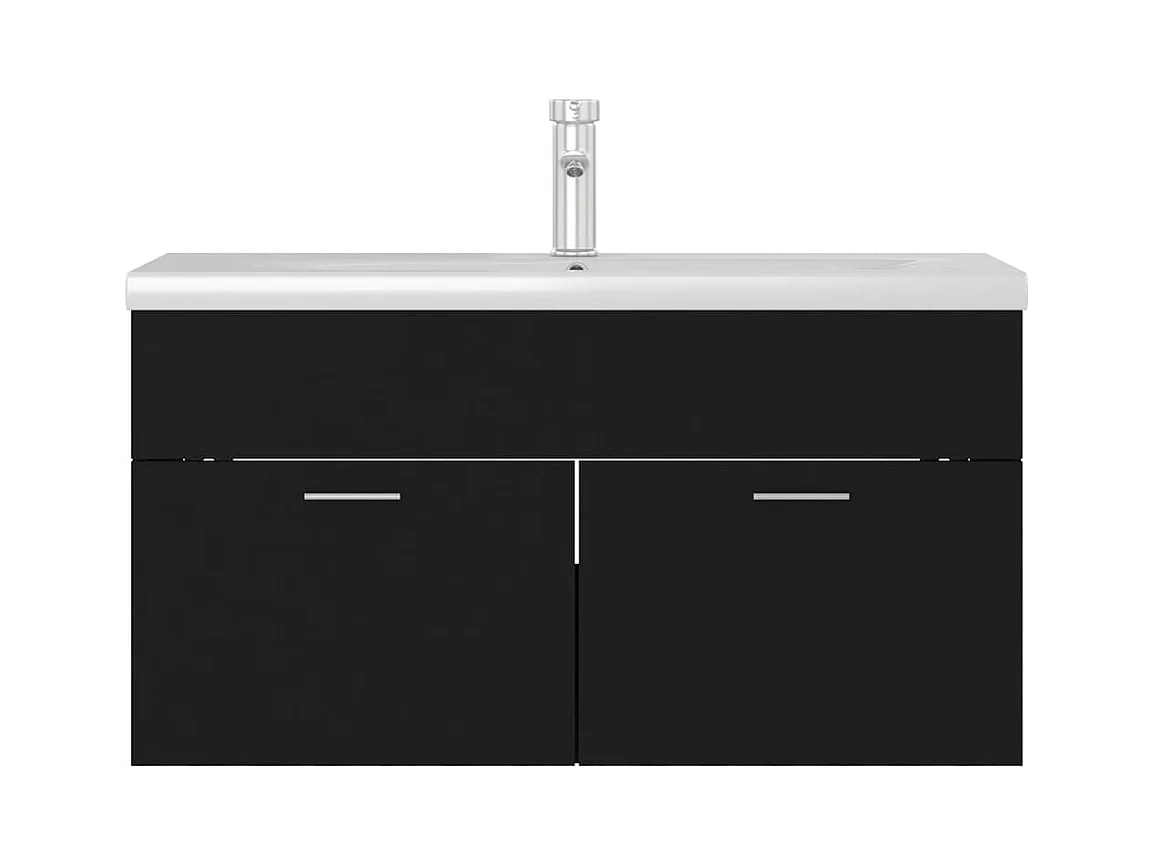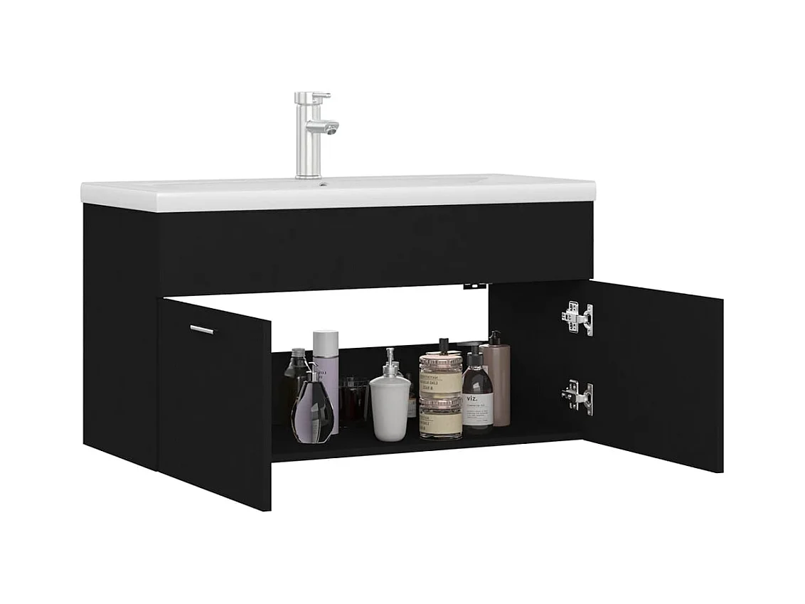 Armoire d'évier avec lavabo intégré Noir Aggloméré