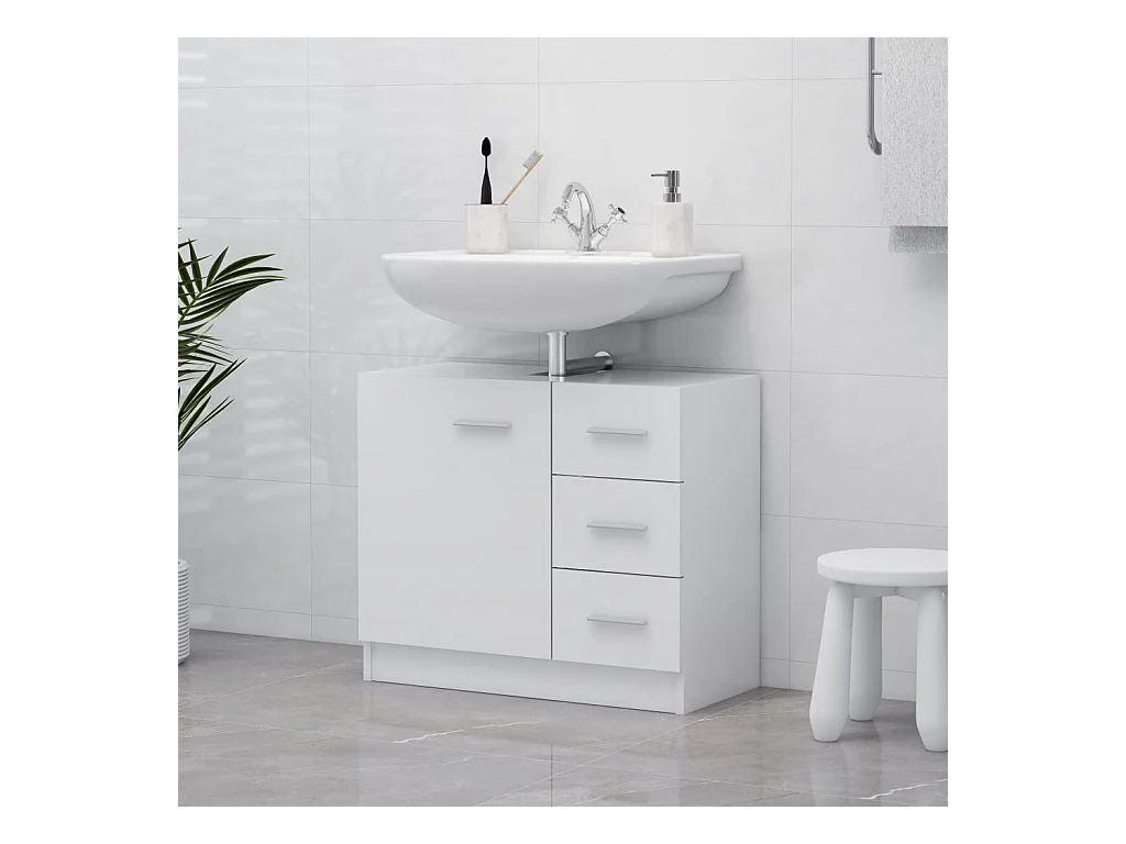 Meubles de salle de bain Blanc brillant Bois d'ingénierie