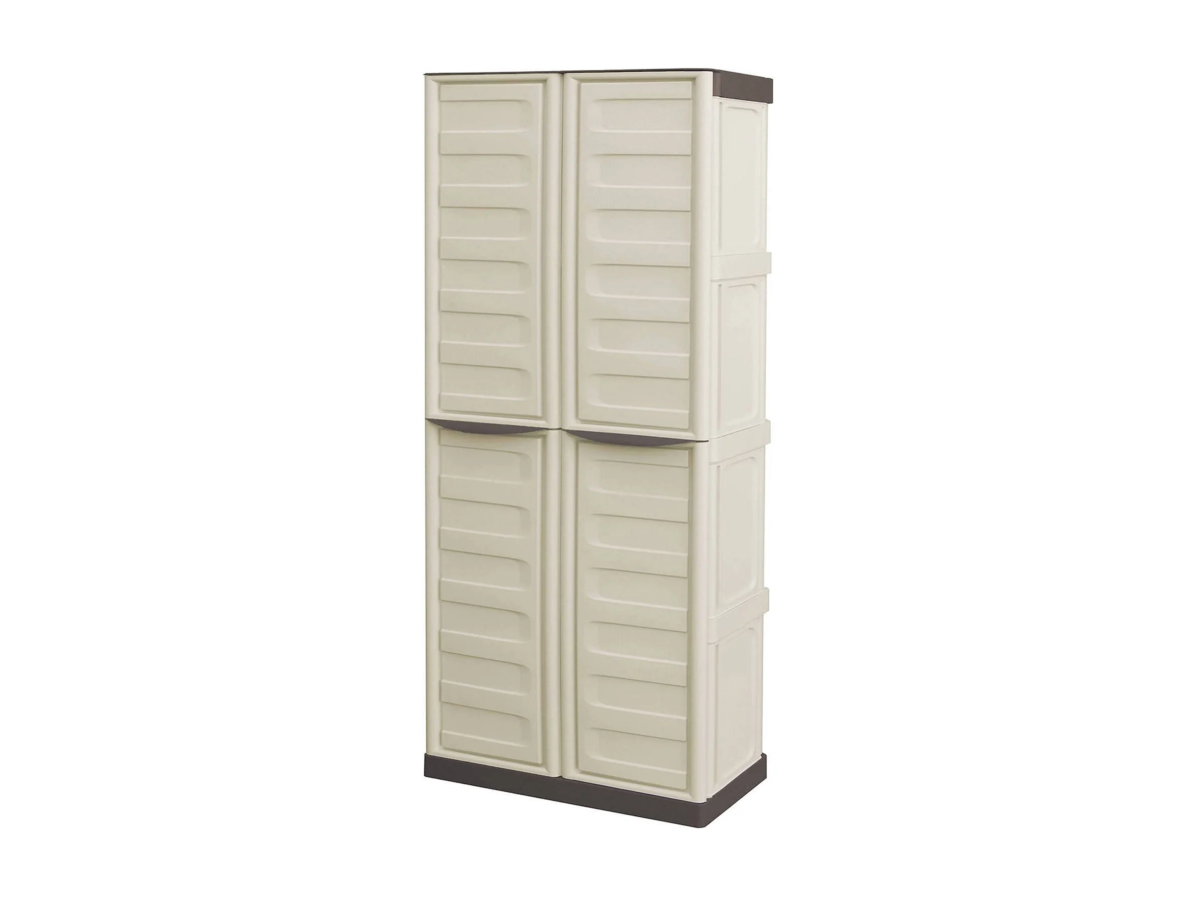 Armoire d'extérieur Avelgem, Armoire de balcon polyvalente, armoire à balais 2 portes, 100% Made in Italy, 70x47h178 cm, Beige et Marron, Finition rayée