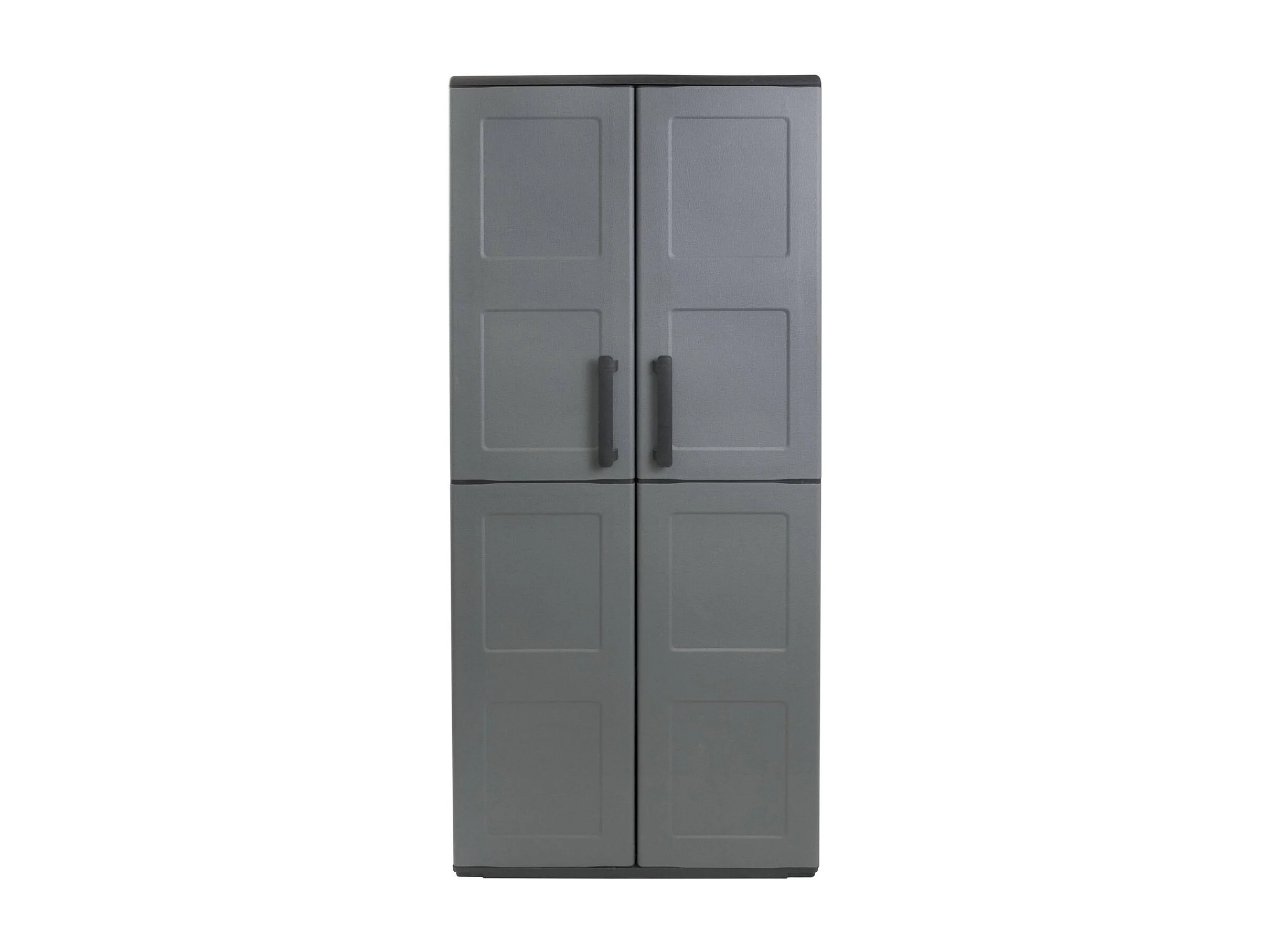 Armoire d'extérieur Veurne, Armoire à balais, Armoire d'extérieur 2 portes, 100% Made in Italy, 68x37h169 cm, Gris clair et noir, Finition rayée