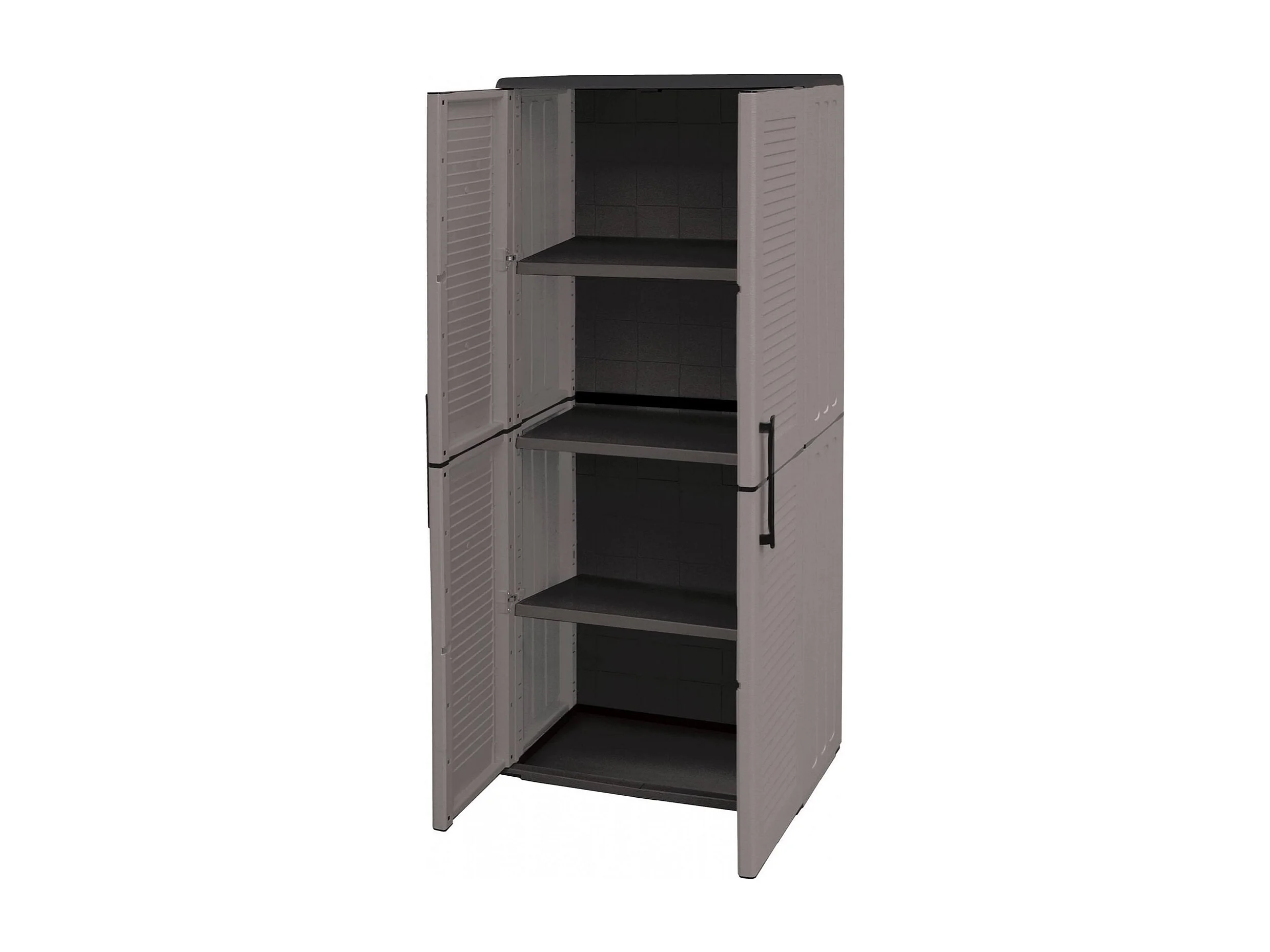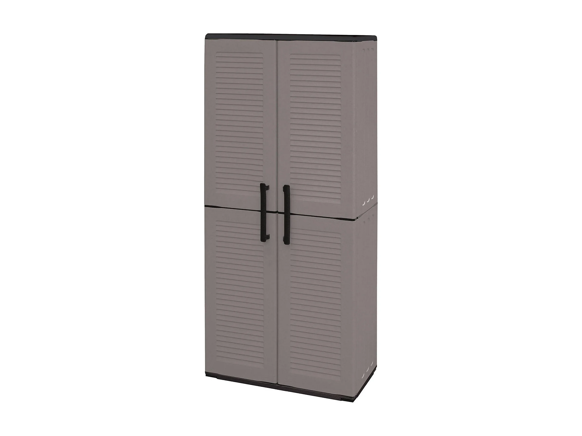Armoire d'extérieur Geel, Armoire porte-balai polyvalente, Armoire d'extérieur 2 portes, 100% Made in Italy, Finition damier, 68x37h163 cm, Gris et Noir