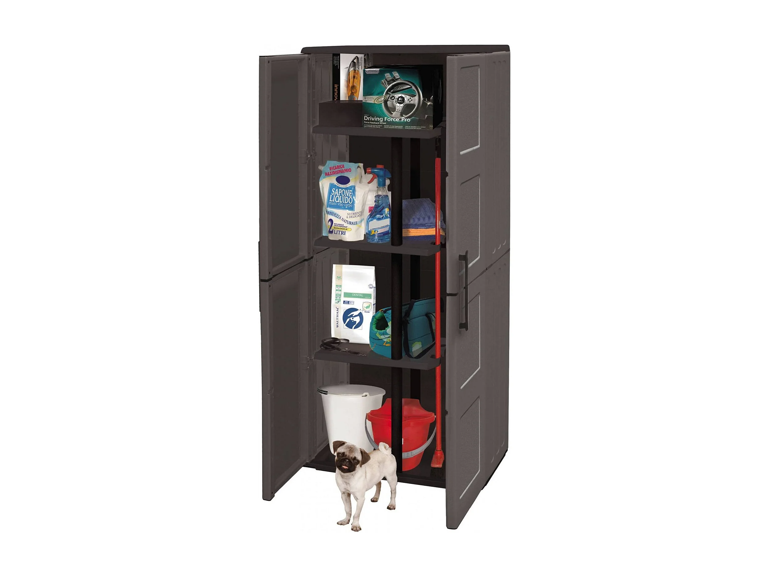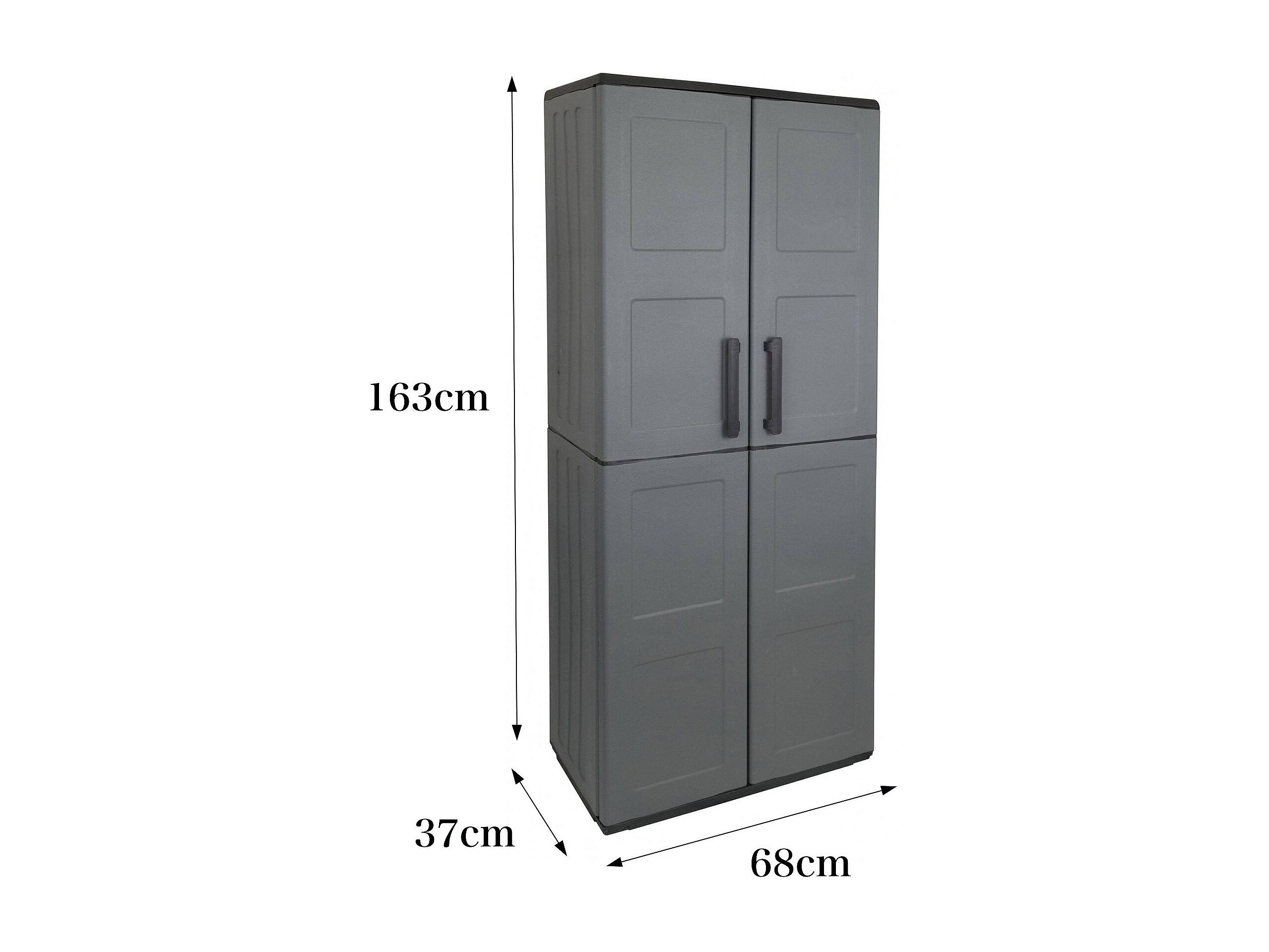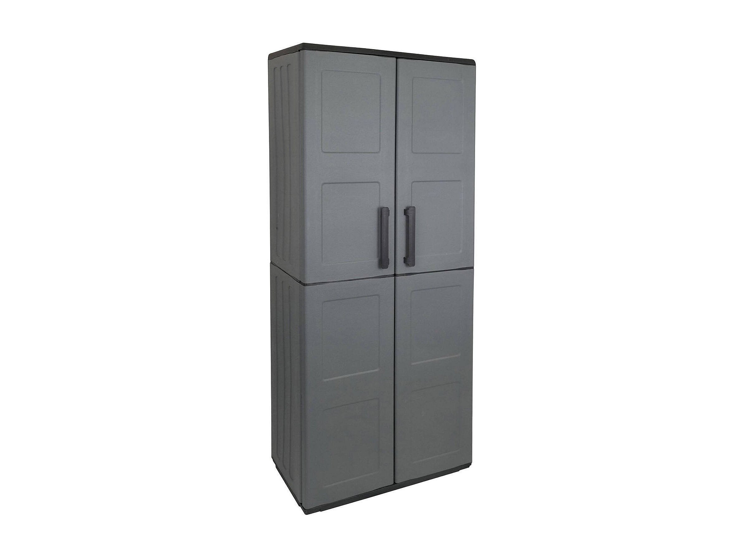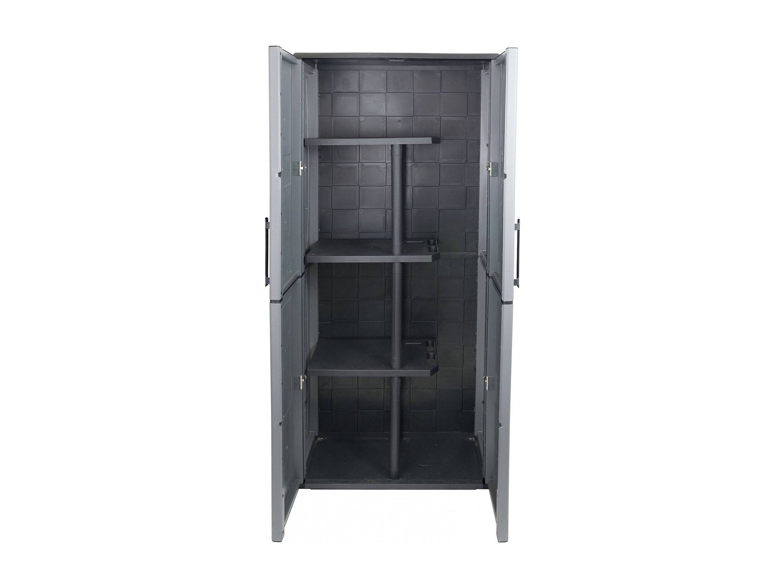 Armoire d'extérieur Geel, Armoire porte-balai polyvalente, Armoire d'extérieur 2 portes, 100% Made in Italy, Finition damier, 68x37h163 cm, Gris et Noir