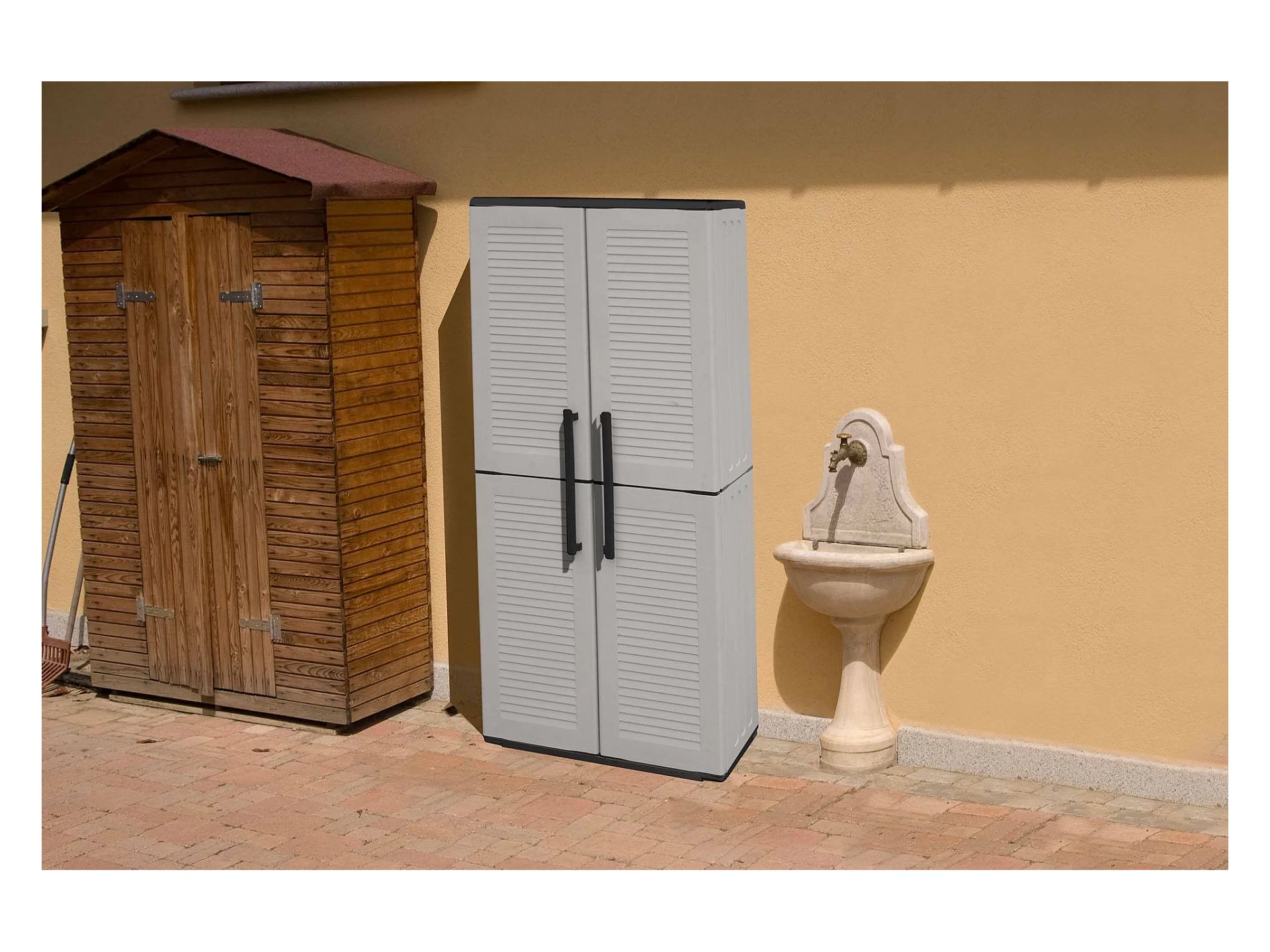 Armoire extérieure ou intérieure, 3 portes et 3 niveaux en polypropylène ajustables, 100% fabriqués en Itala, 102x37h163 cm, couleur grise
