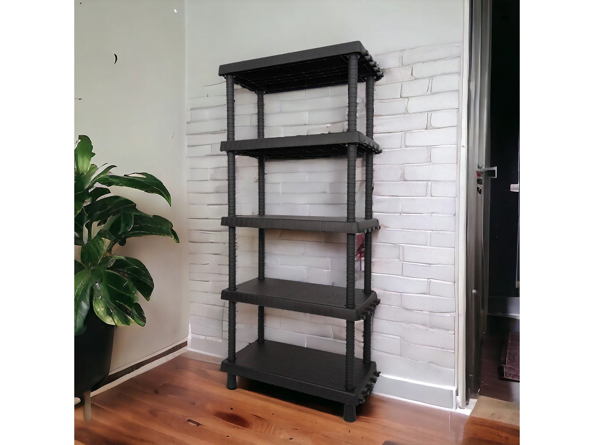 Armoire d'extérieur Perwez, Etagère d'extérieur, Armoire de balcon polyvalente avec 3 étagères, 100% Made in Italy, 70x35h172 cm, Gris clair et noir