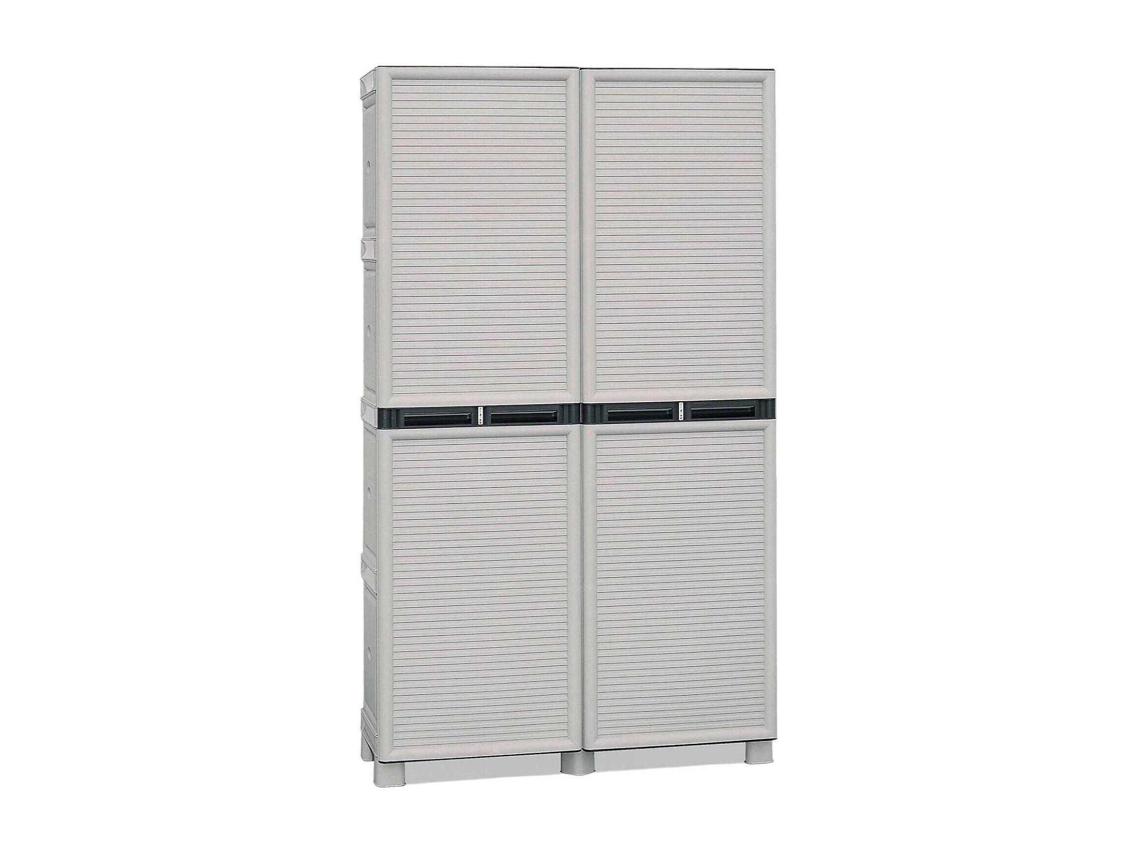 Armoire extérieure ou intérieure, 3 portes et 3 niveaux en polypropylène ajustables, 100% fabriqués en Itala, 102x37h163 cm, couleur grise