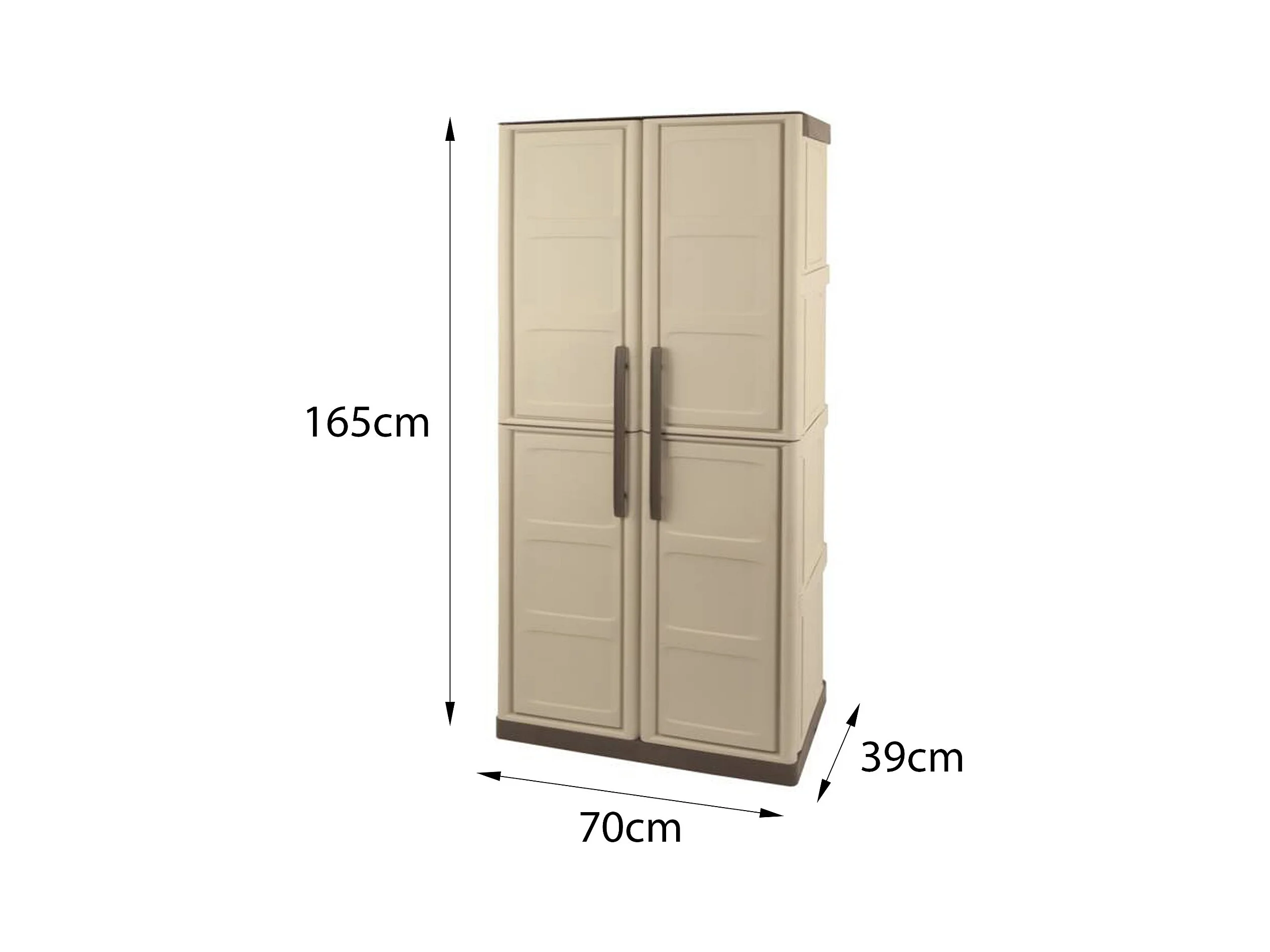 Armoire d'extérieur Courtrai, Armoire de balcon polyvalente, Mobilier d'extérieur avec 2 portes, 100% Made in Italy, Beige et Marron, 70x39h86 cm, Finition rayée
