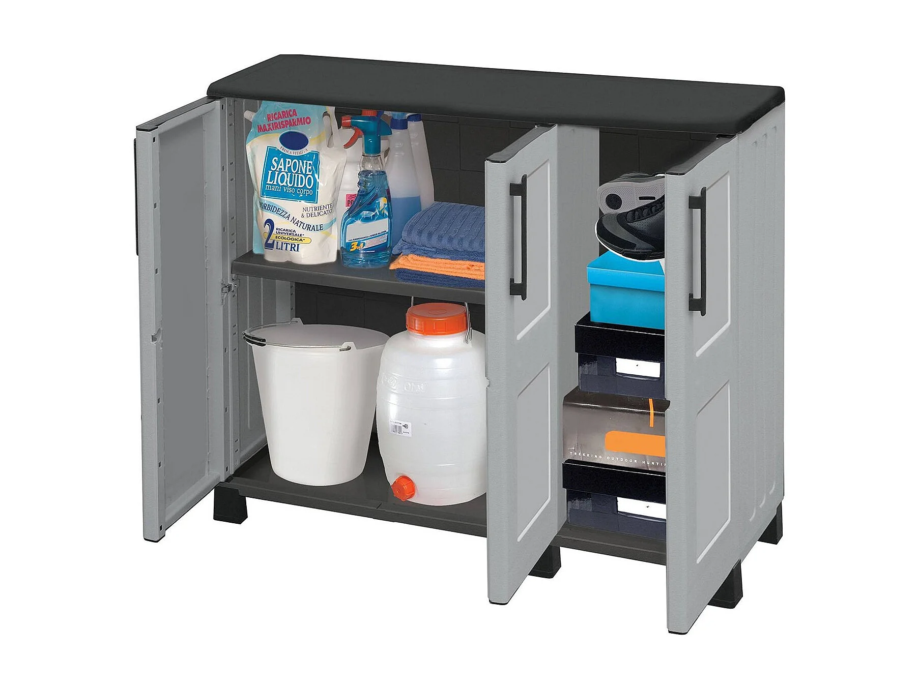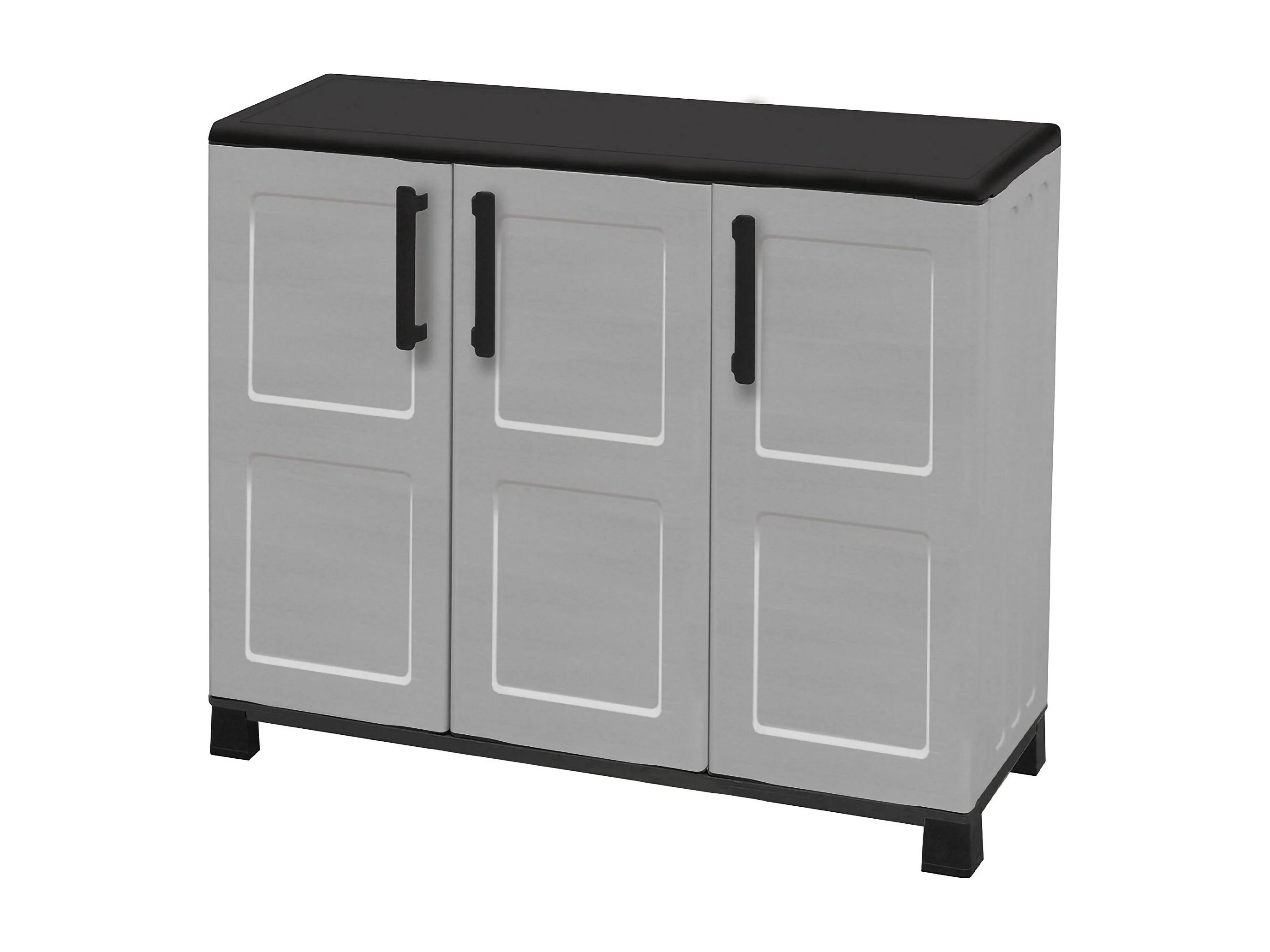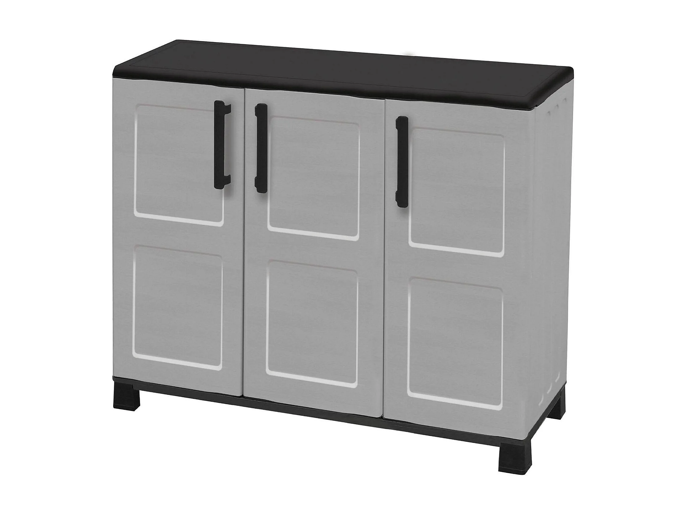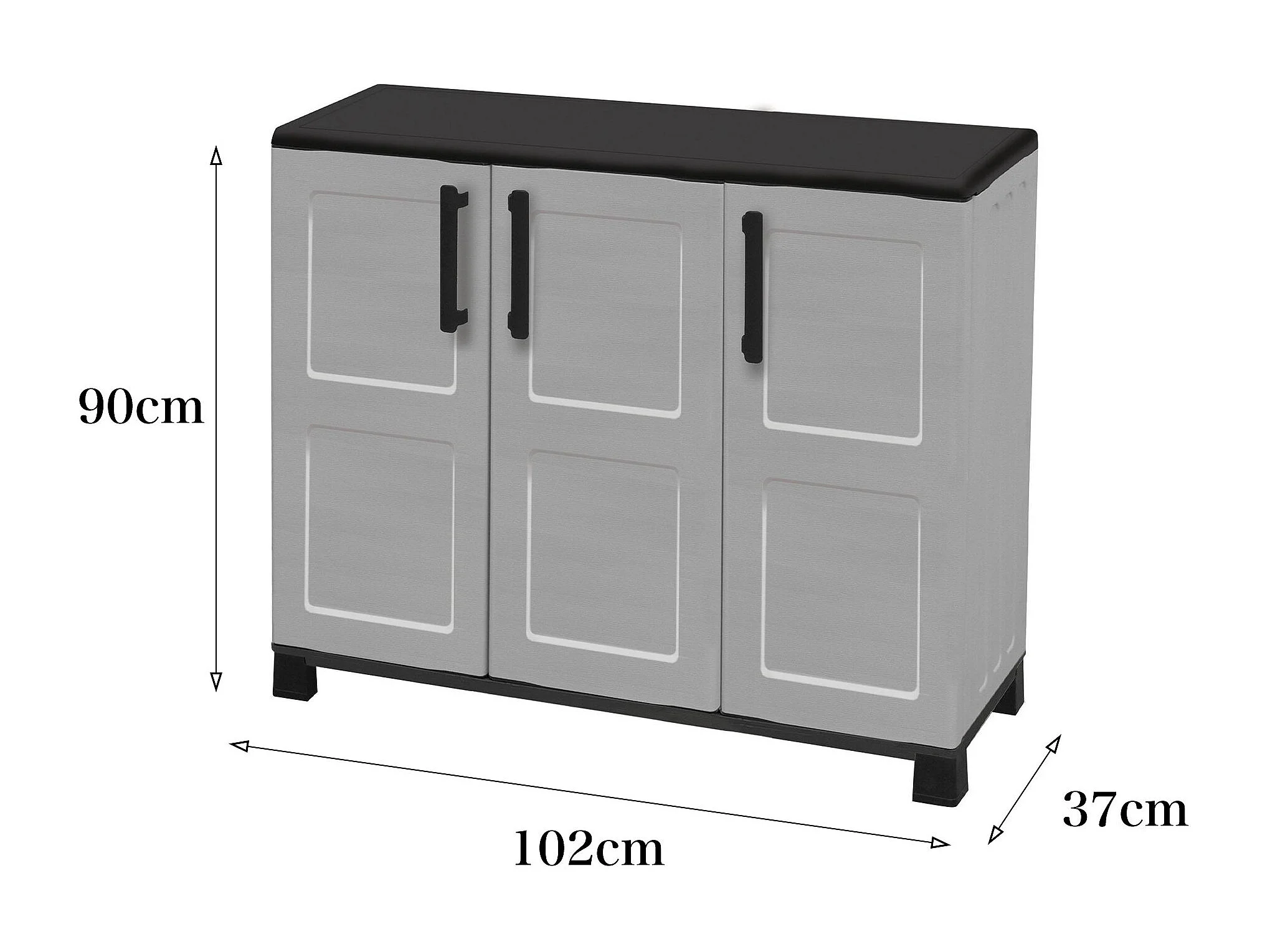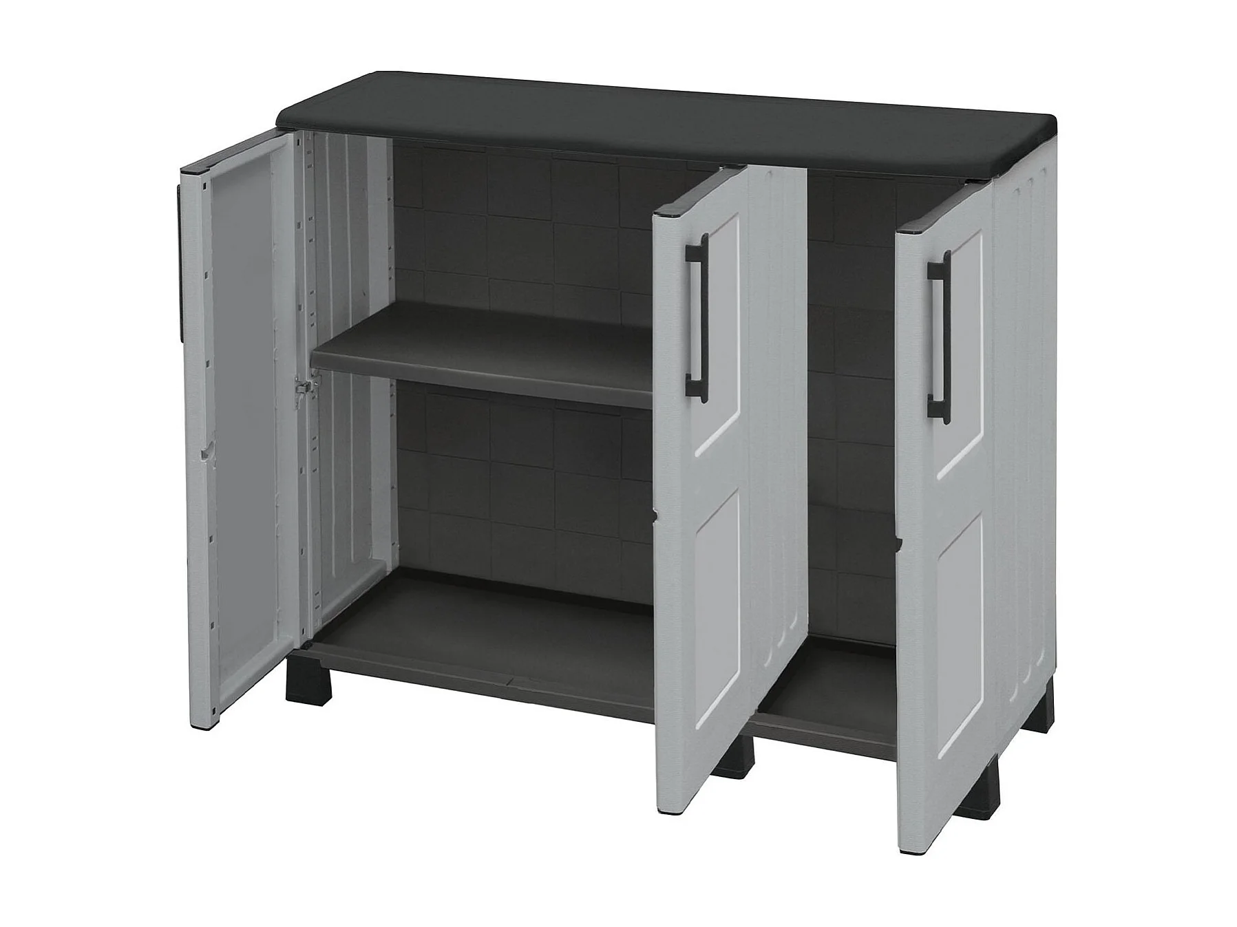 Armoire d'extérieur Pelt, Armoire de balcon polyvalente, Armoire d'extérieur 3 portes, 100% Made in Italy, 102x37h90 cm, Gris clair et noir, Finition à carreaux