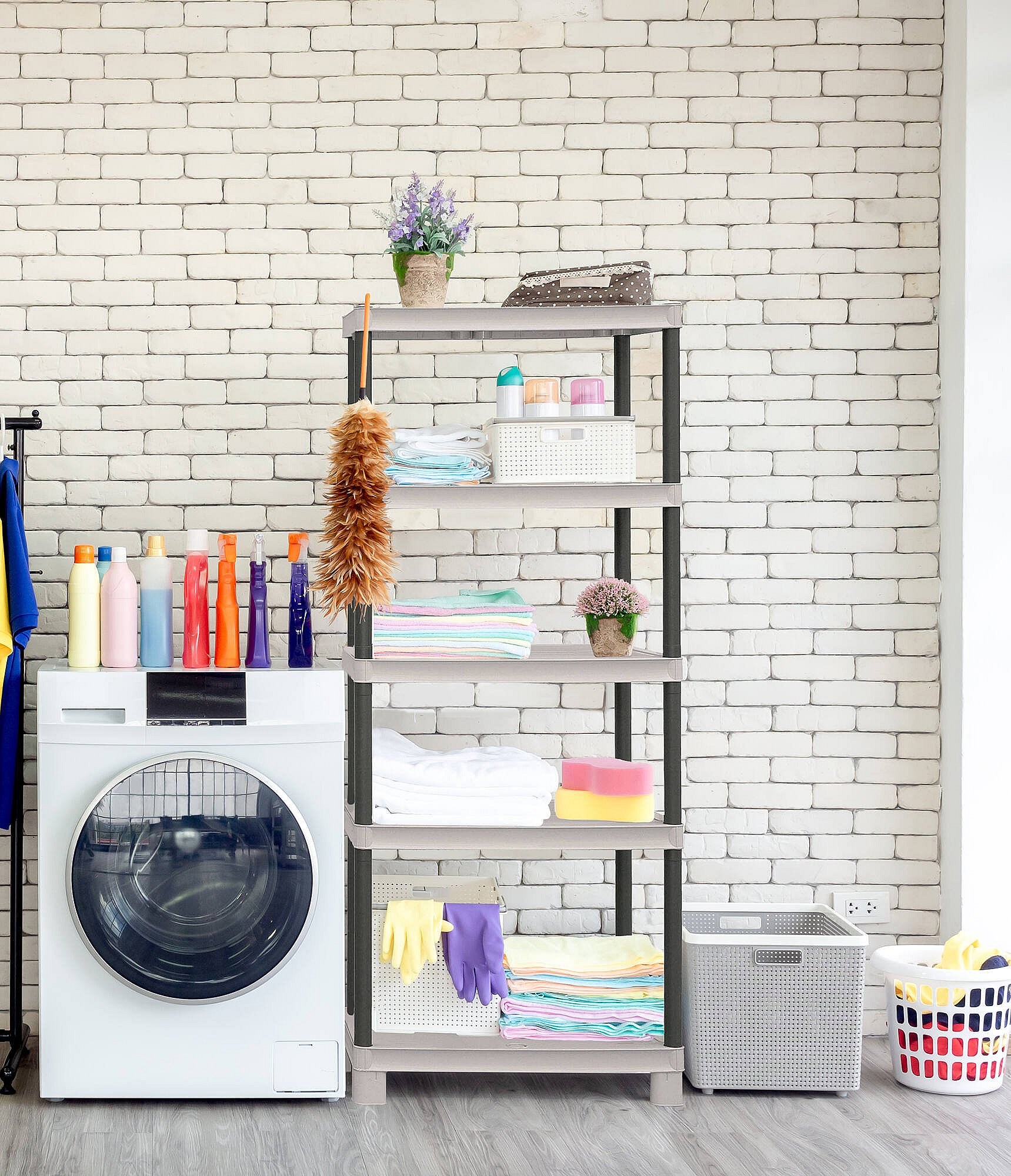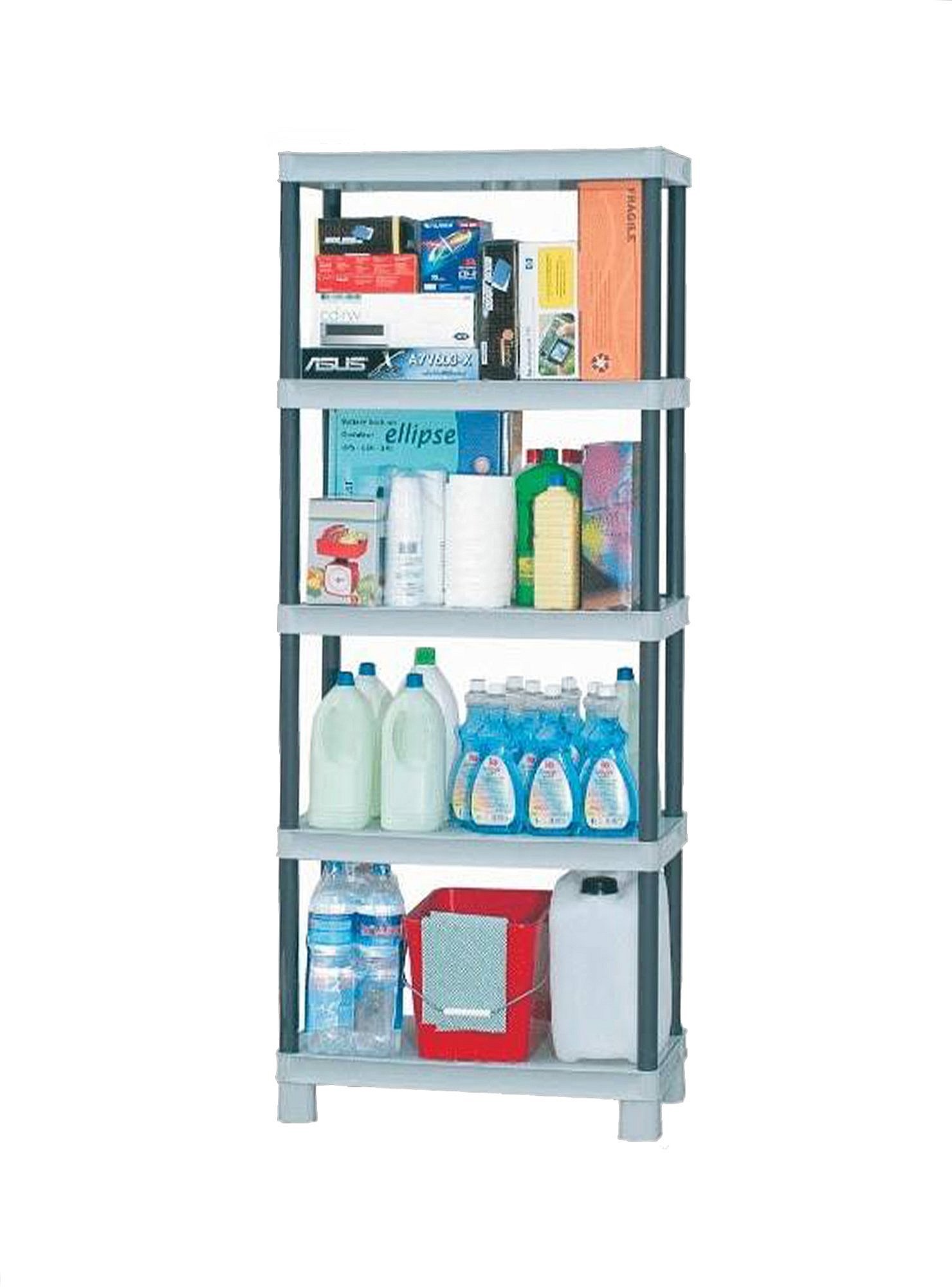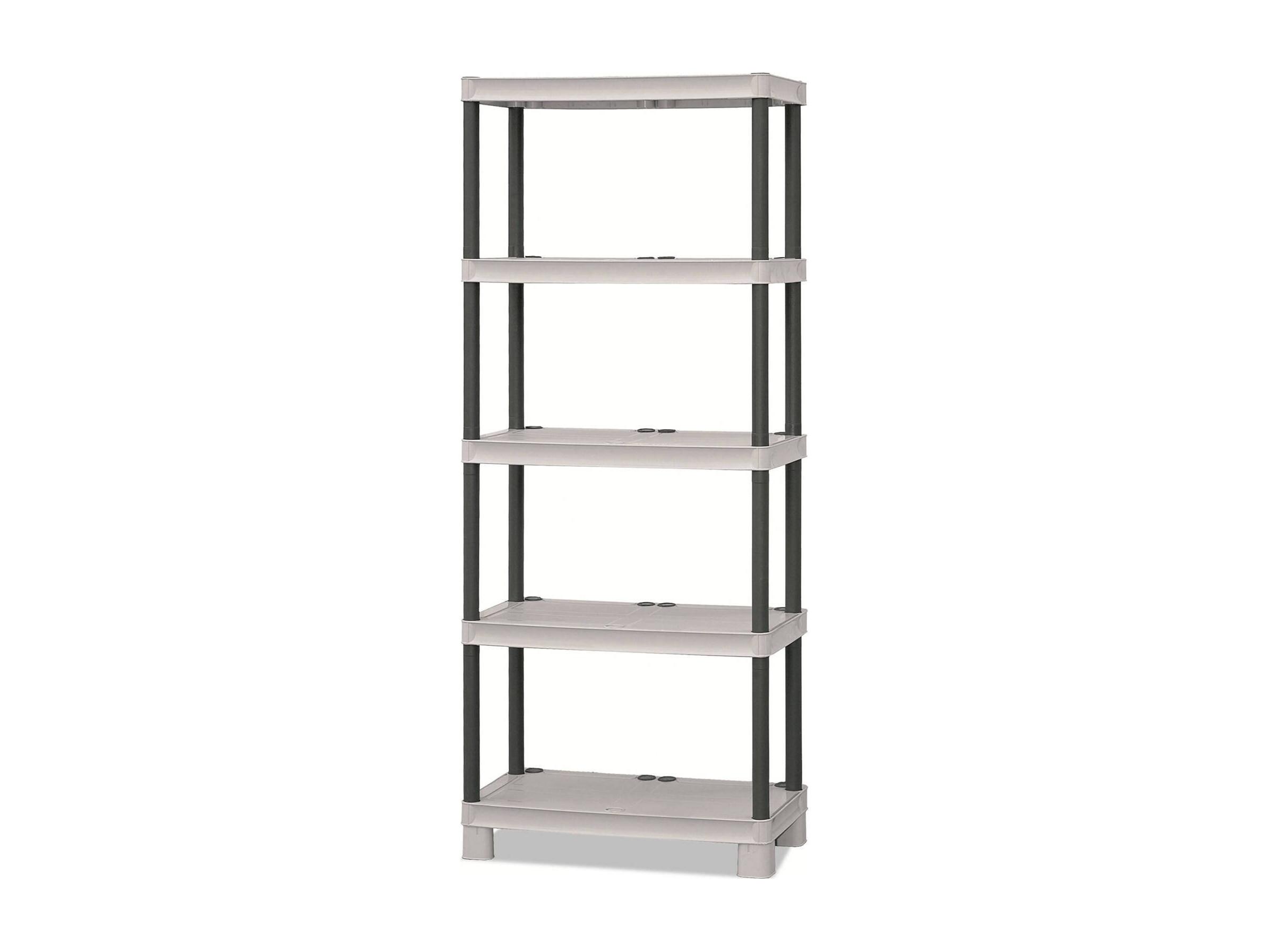 Armoire d'extérieur Perwez, Etagère d'extérieur, Armoire de balcon polyvalente avec 3 étagères, 100% Made in Italy, 70x35h172 cm, Gris clair et noir
