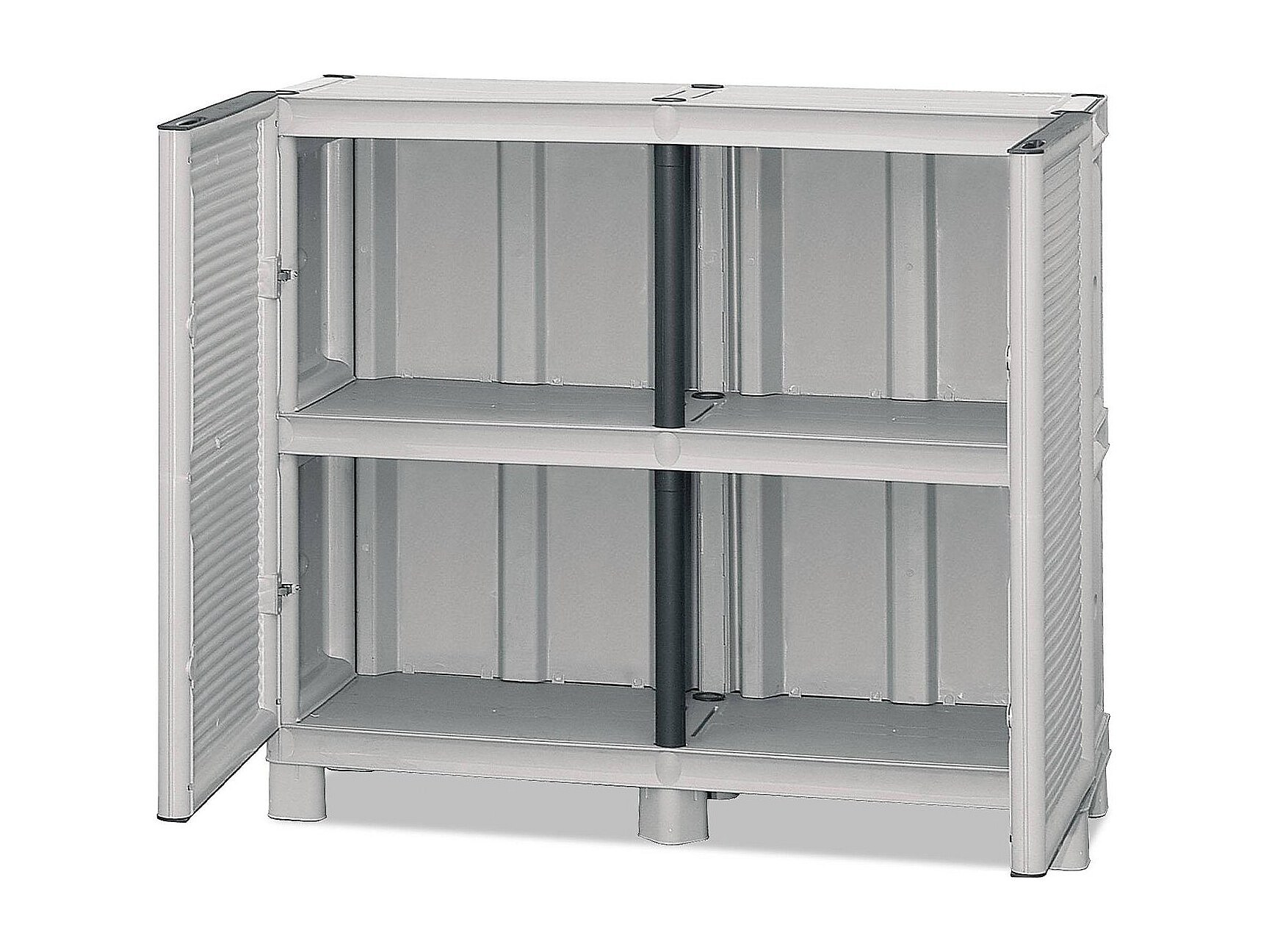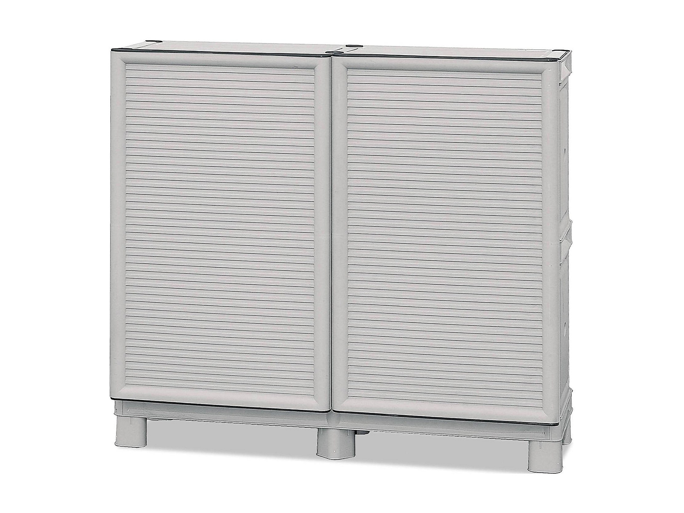 Armoire extérieure ou intérieure, 3 portes et 3 niveaux en polypropylène ajustables, 100% fabriqués en Itala, 102x37h163 cm, couleur grise