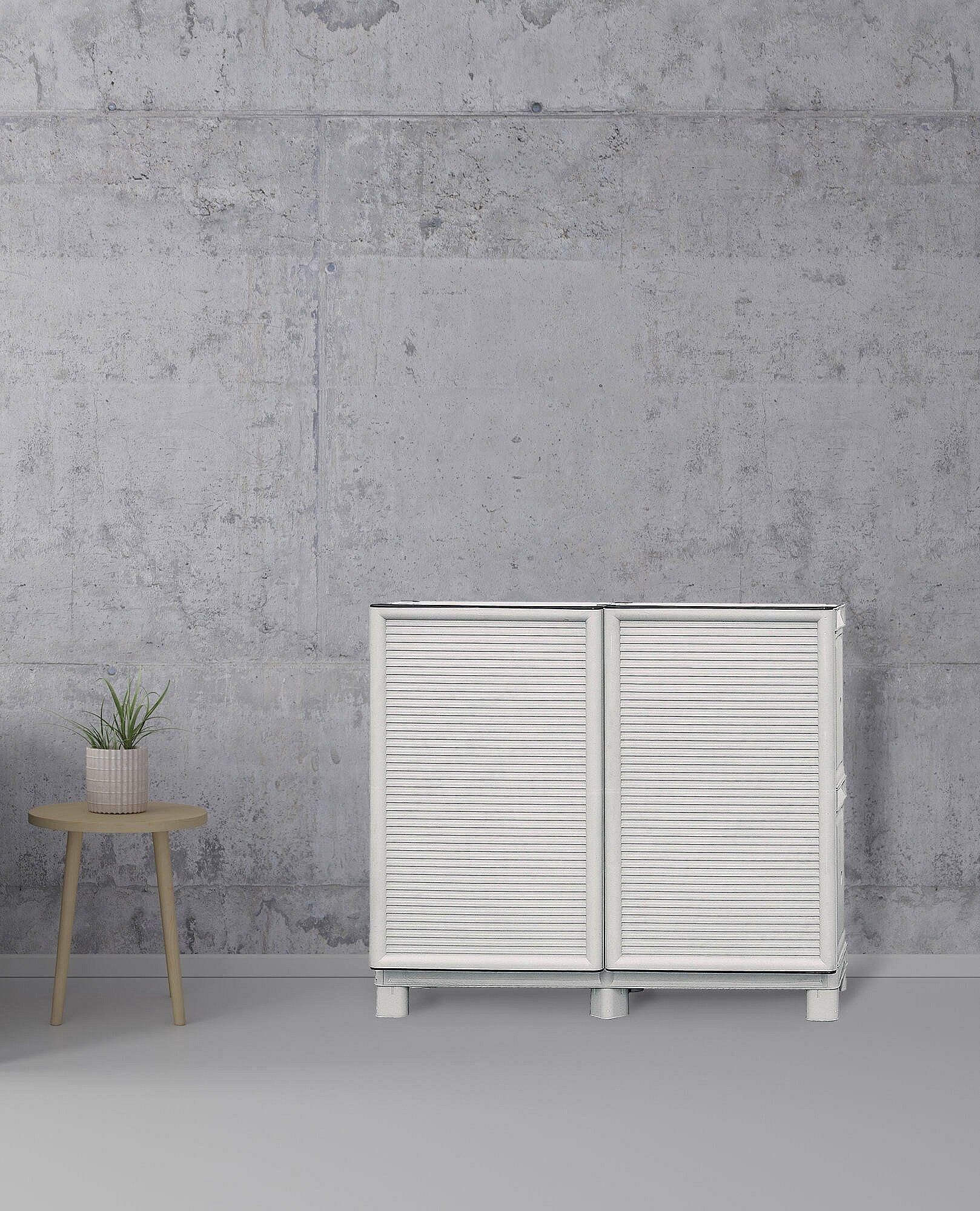 Armoire d'extérieur Wavre, Armoire de balcon polyvalente, Armoire d'extérieur 2 portes, 100% Made in Italy, 68x37h90 cm, Gris clair et noir, Finition rayée