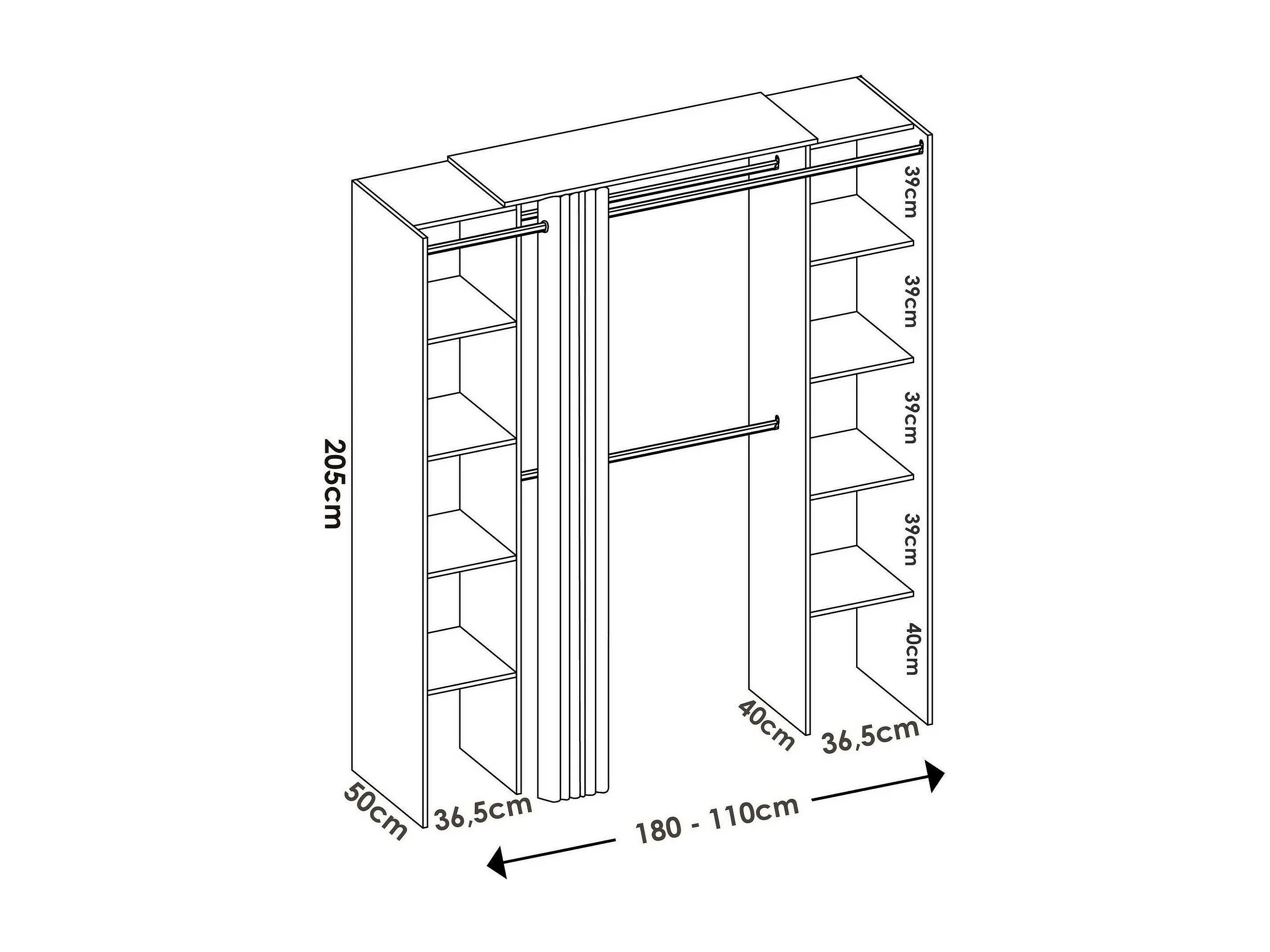 Armoire Dgond, Structure pour dressing, Cintre ouvert extensible, 180x50h205 cm, Blanc et Gris