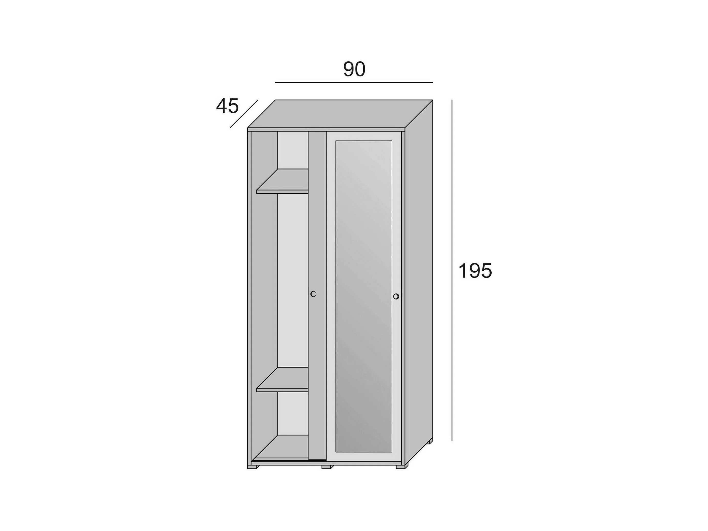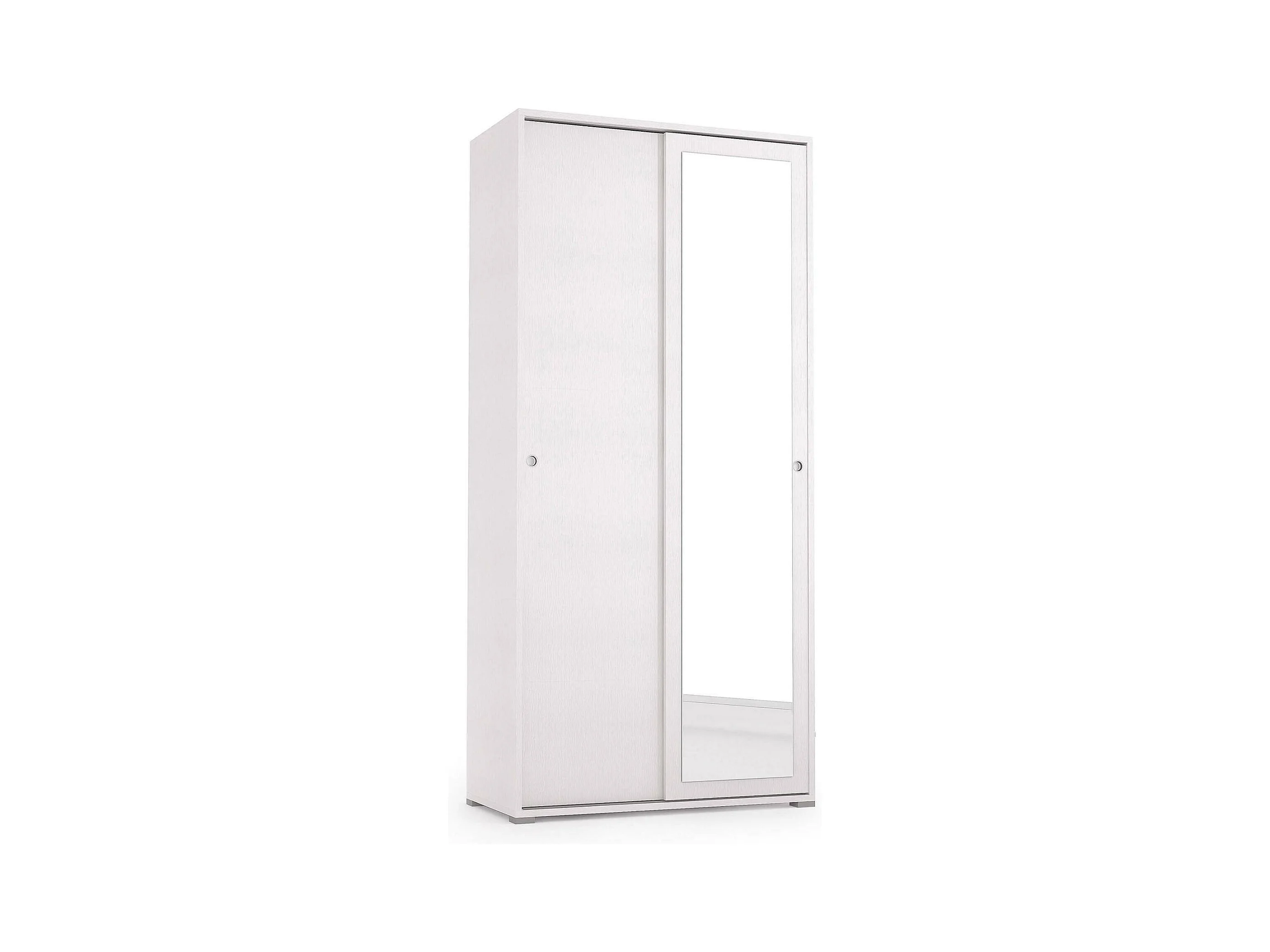 Armoire Dmontic, Armoire avec 2 portes coulissantes et miroir, Armoire avec tringle à vêtements et étagères, 100% Made in Italy, 90x45h195 cm, Blanc