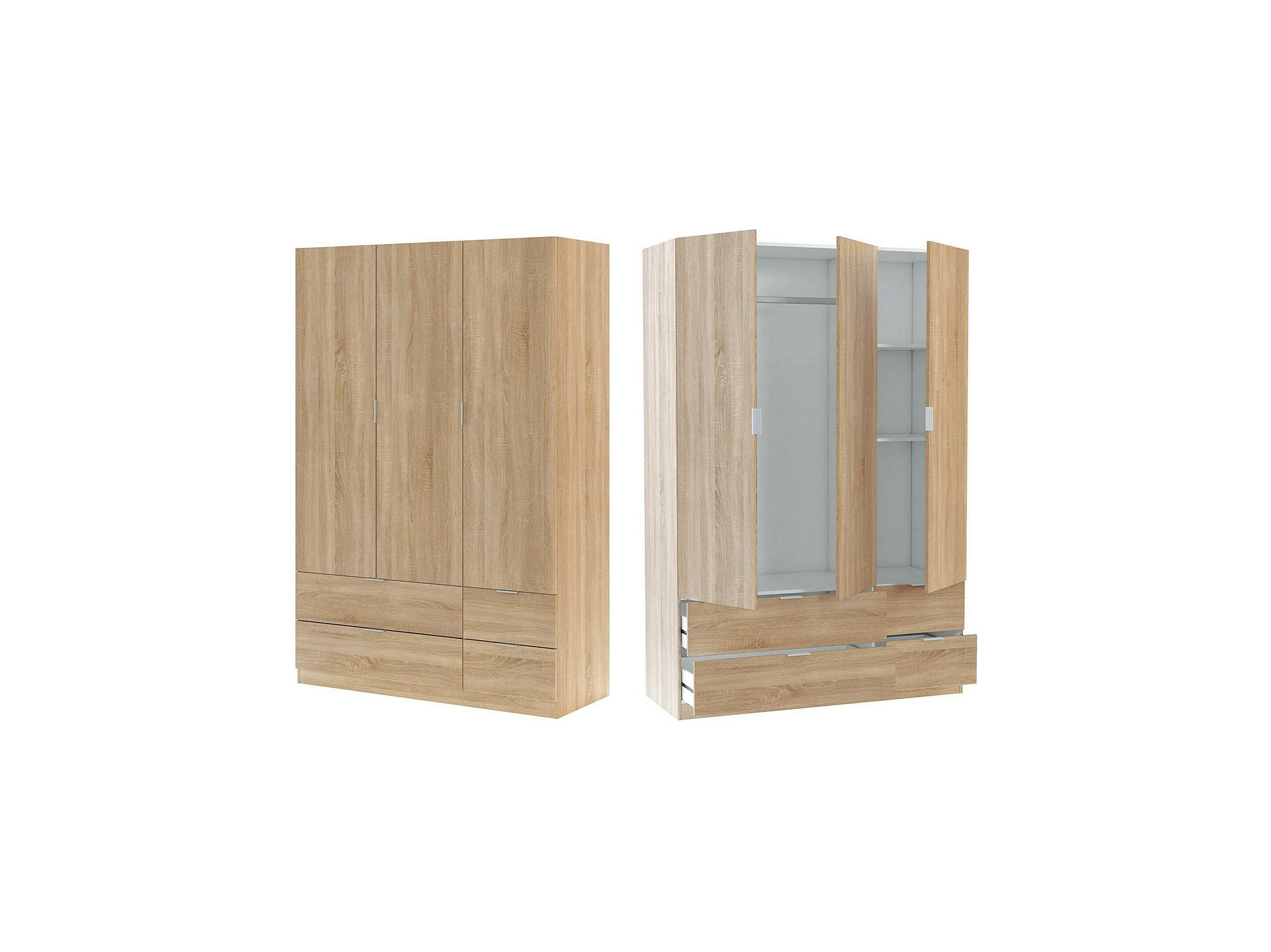 Armoire Dob, Armoire de chambre avec 3 portes et 2 tiroirs, Armoire à vêtements, 135x52h200 cm, Chêne