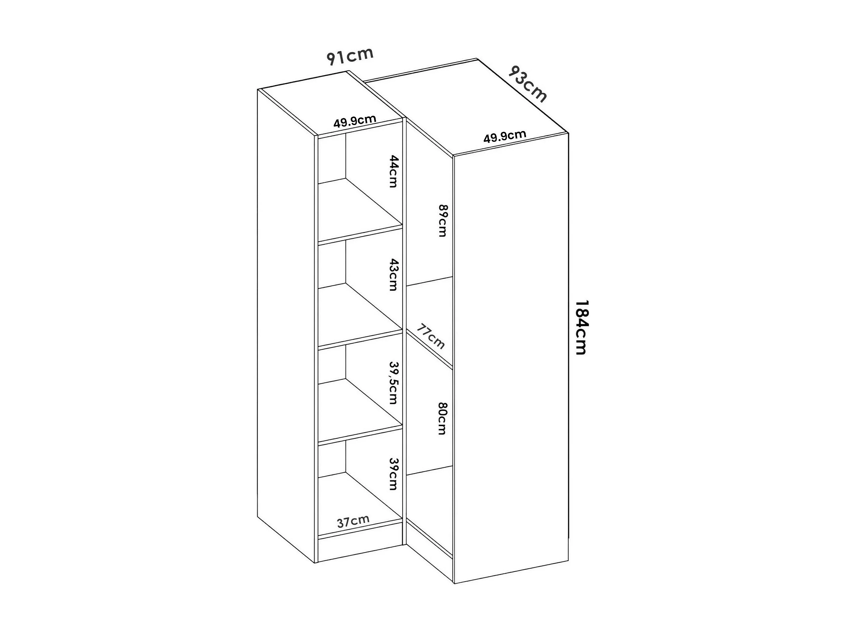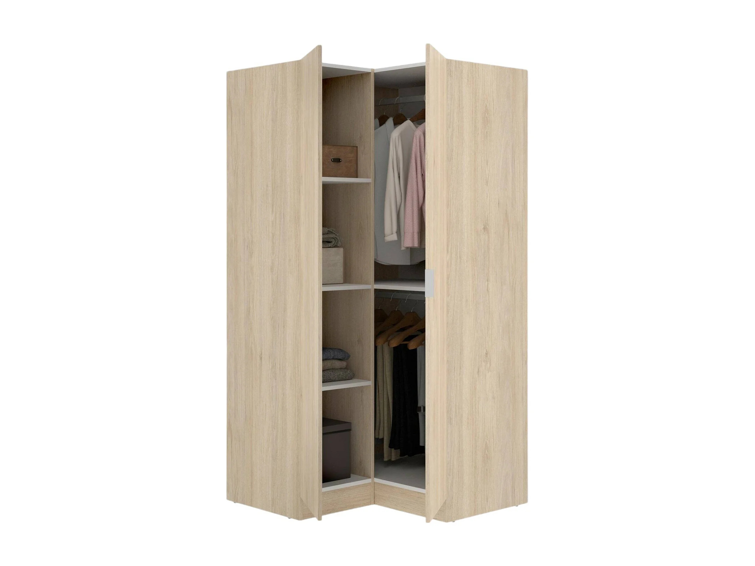 Armoire Elgon, Armoire d'angle pour chambre à coucher, Armoire d'angle avec 2 portes battantes, 91x93h184 cm, Chêne