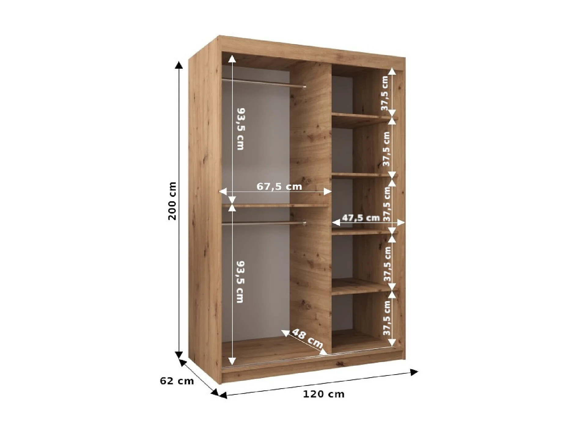 Armoire Elypse À Portes Coulissantes 200/120/62 2 portes (Artisan/Artisan)