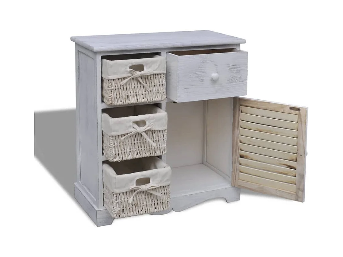 Armoire en bois 3 paniers gauches en tissage Blanc FR14848