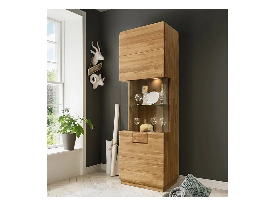 Vitrine en bois massif de Mindy naturel 2 portes coulissantes Mazari 200cm