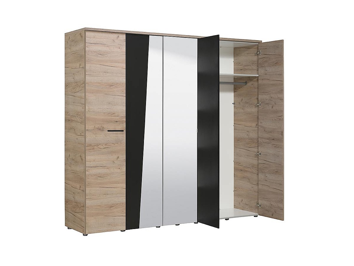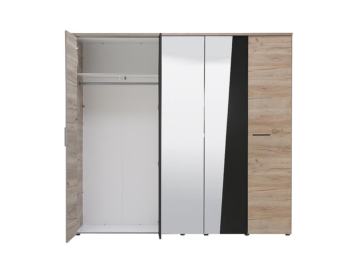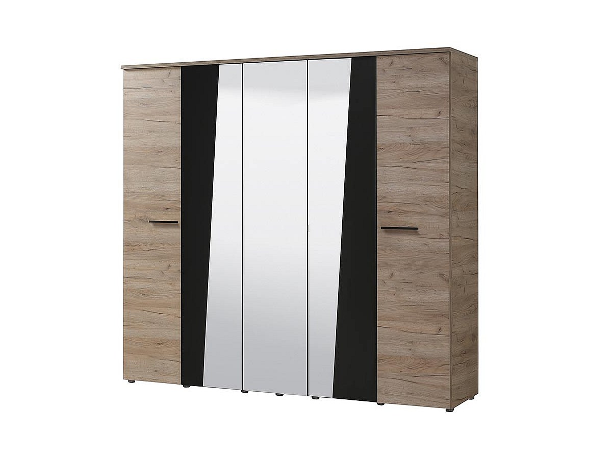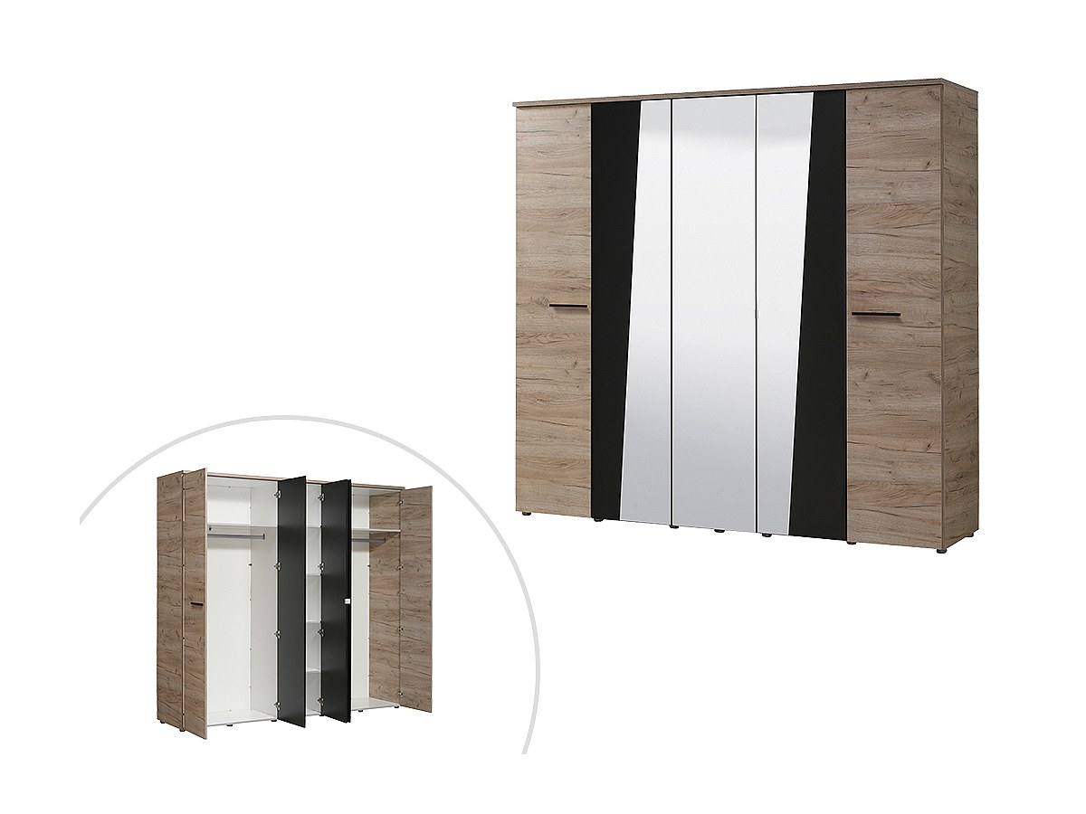 Armoire FAVARA - 5 portes - Avec miroir - L.223 cm - Coloris: Chêne et noir
