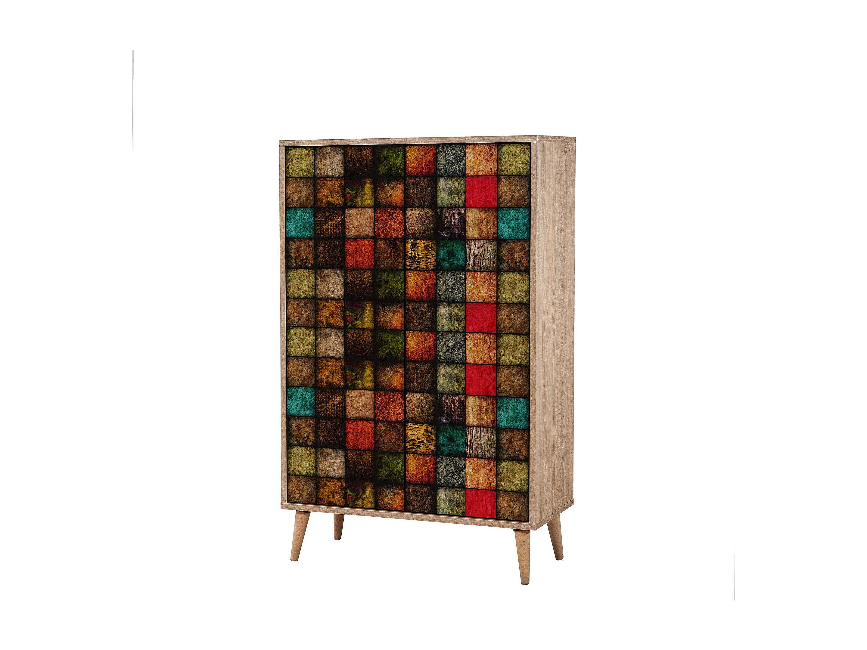 Armoire fermé Repono L80xH127cm Bois Naturel et Motif Carreaux Multicolore