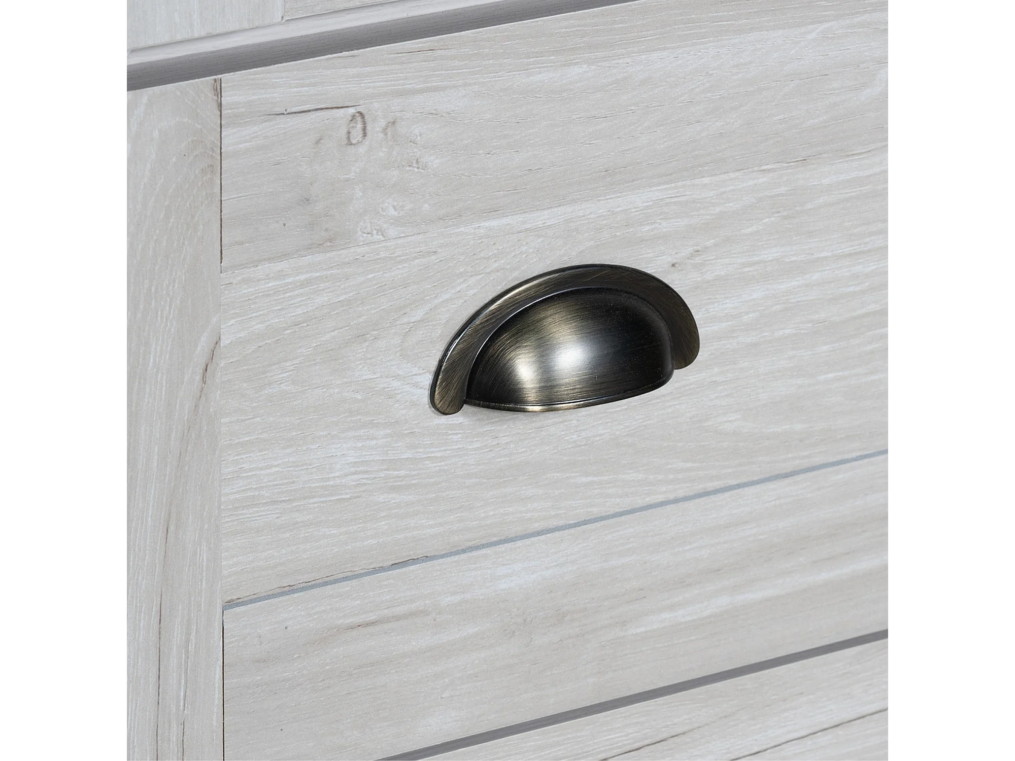 Armoire haute 80x34x171cm avec 2 portes et 3 tiroirs, corps en placage woodgrain blanc avec poignées en acier