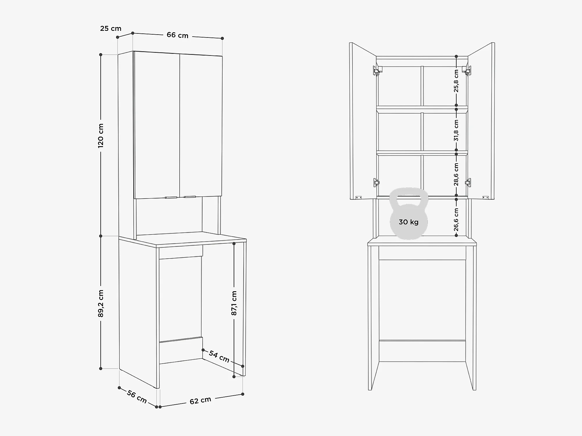 Armoire Haute LORA pour Lave-linge & Sèche-linge - 210x65x56/25 cm