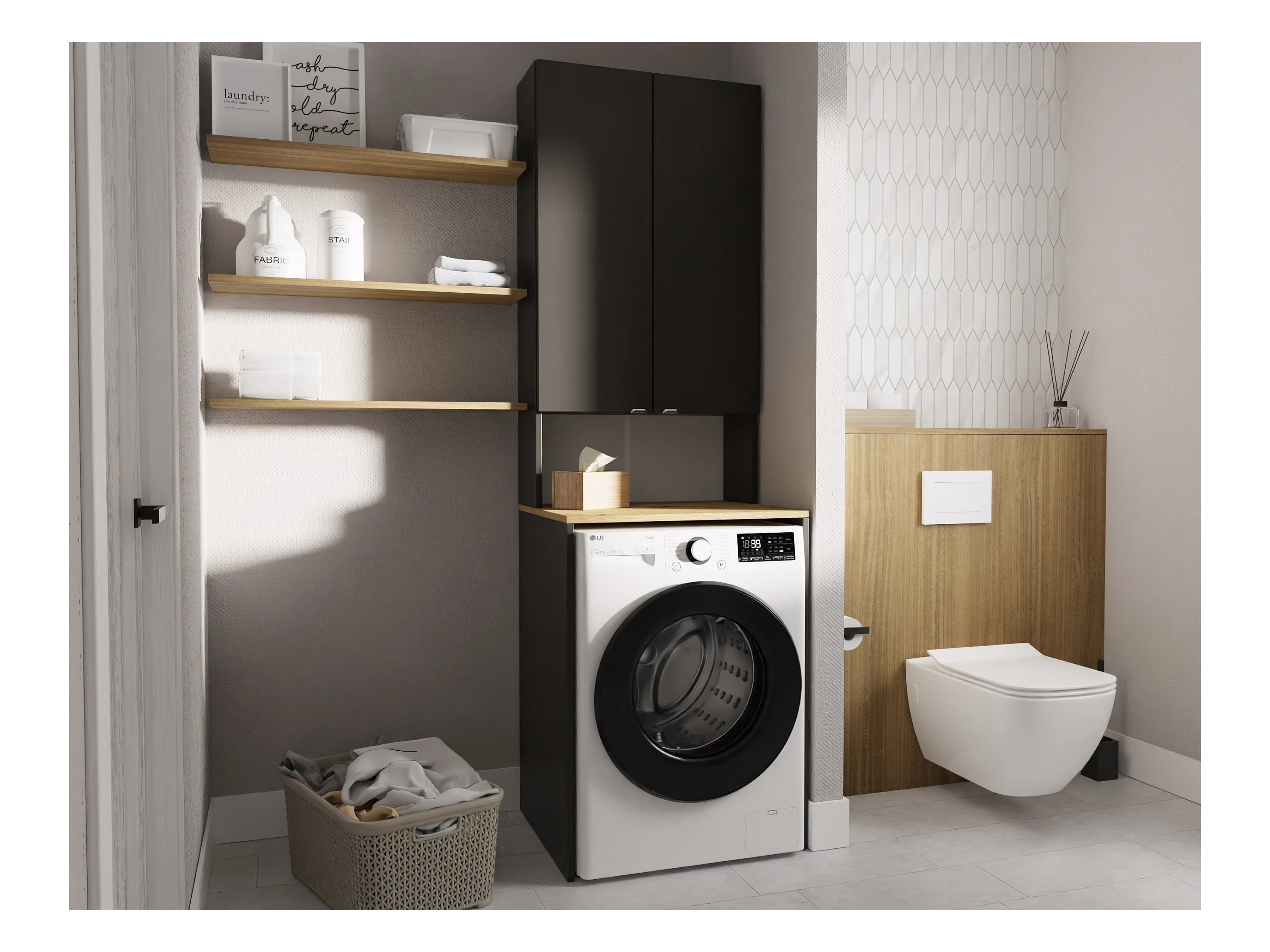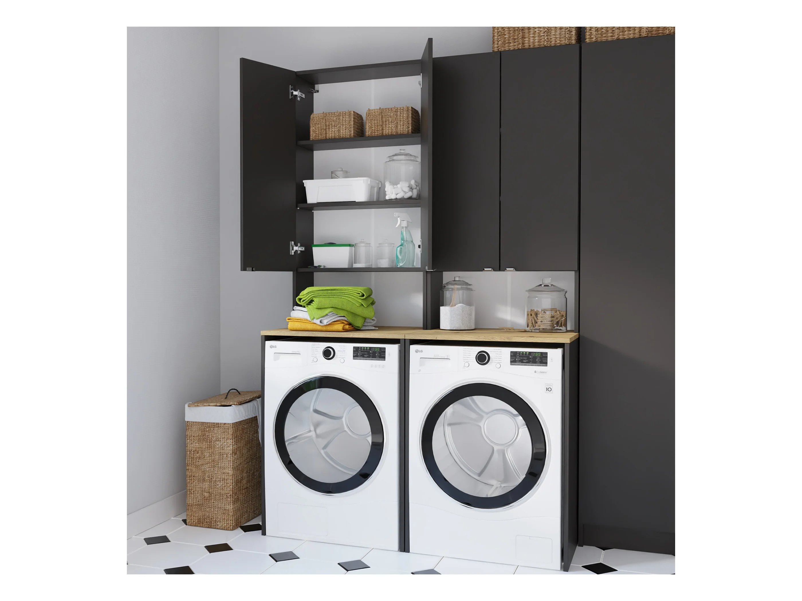 Armoire Haute LORA pour Lave-linge & Sèche-linge - 210x65x56/25 cm - Anthracite/Artisan