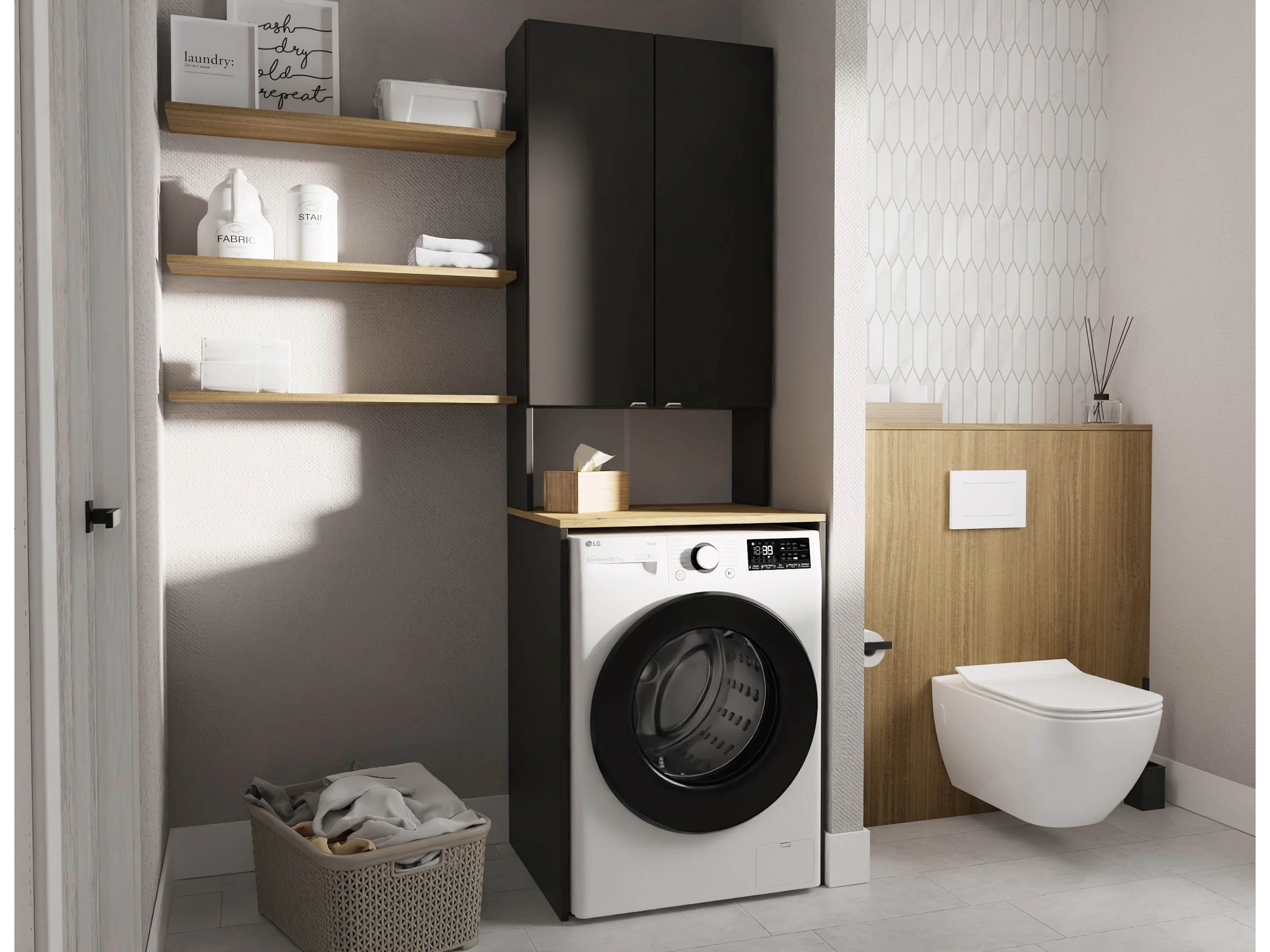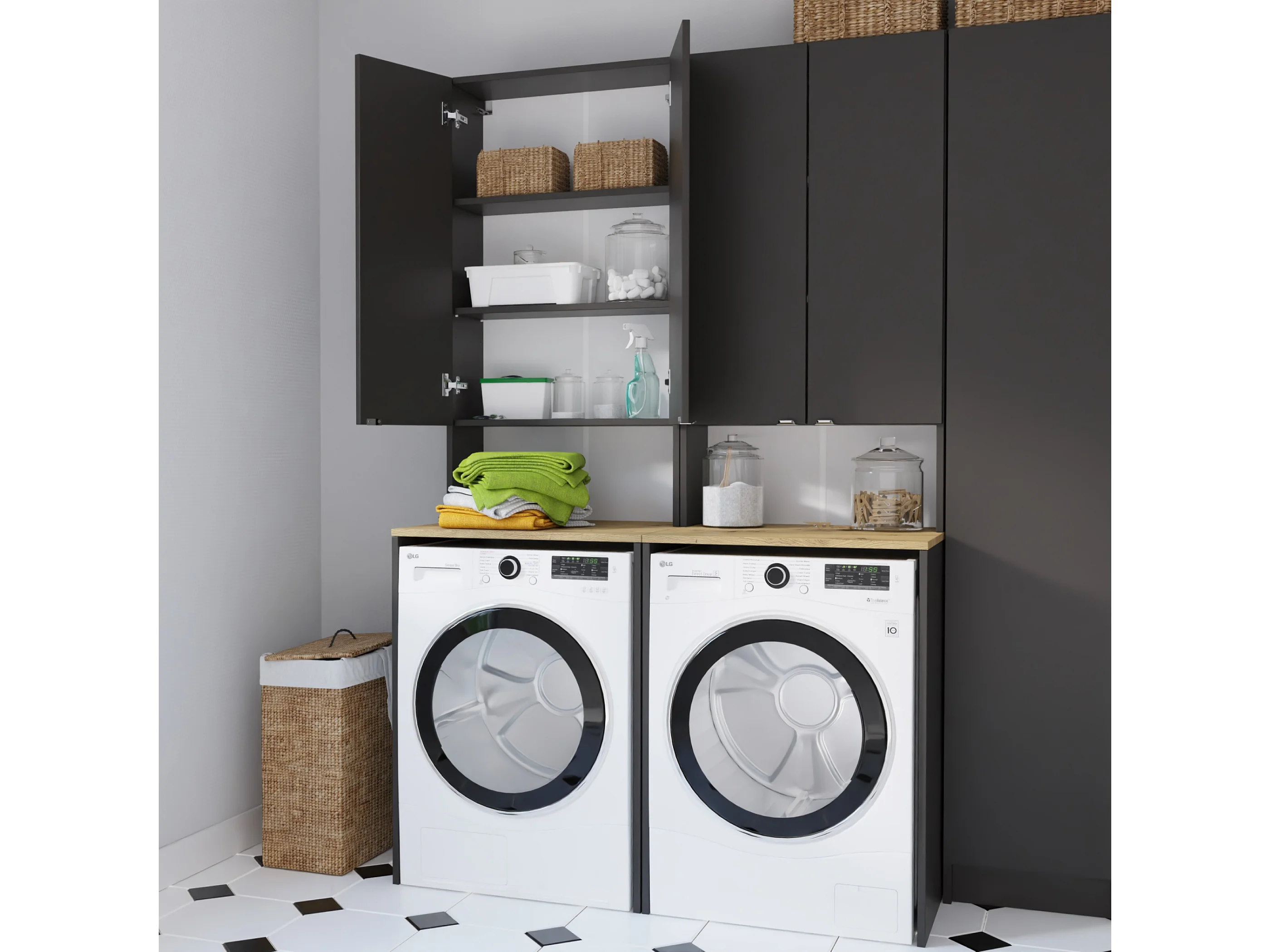 Armoire Haute LORA pour Lave-linge & Sèche-linge - 210x66x56/25 cm - Anthracite/Artisan