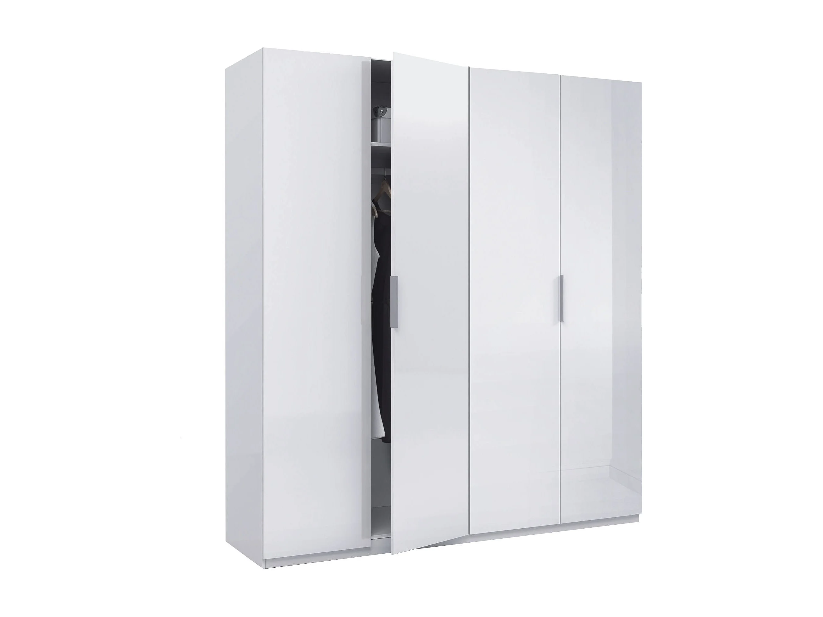 Armoire Knoxville, Armoire de chambre avec 4 portes battantes, Armoire avec 2 étagères et tringle à vêtements, 180x52h200 cm, Blanc