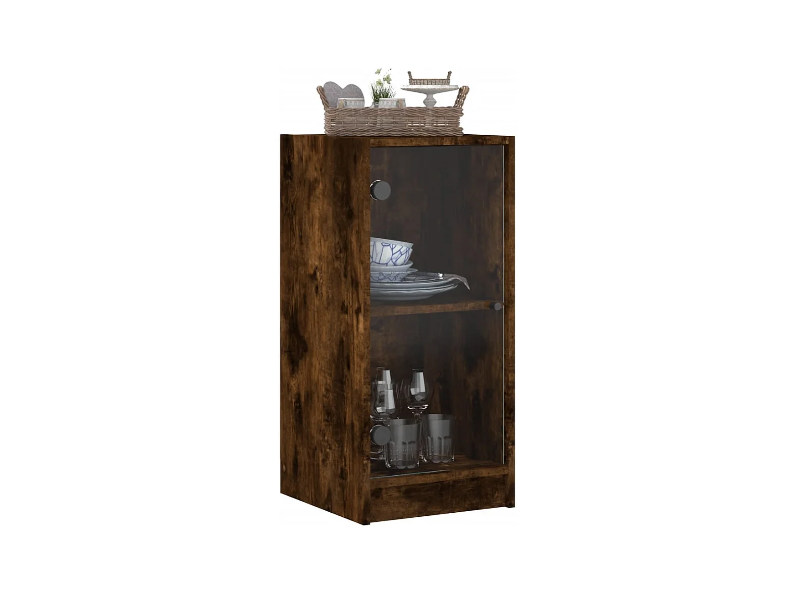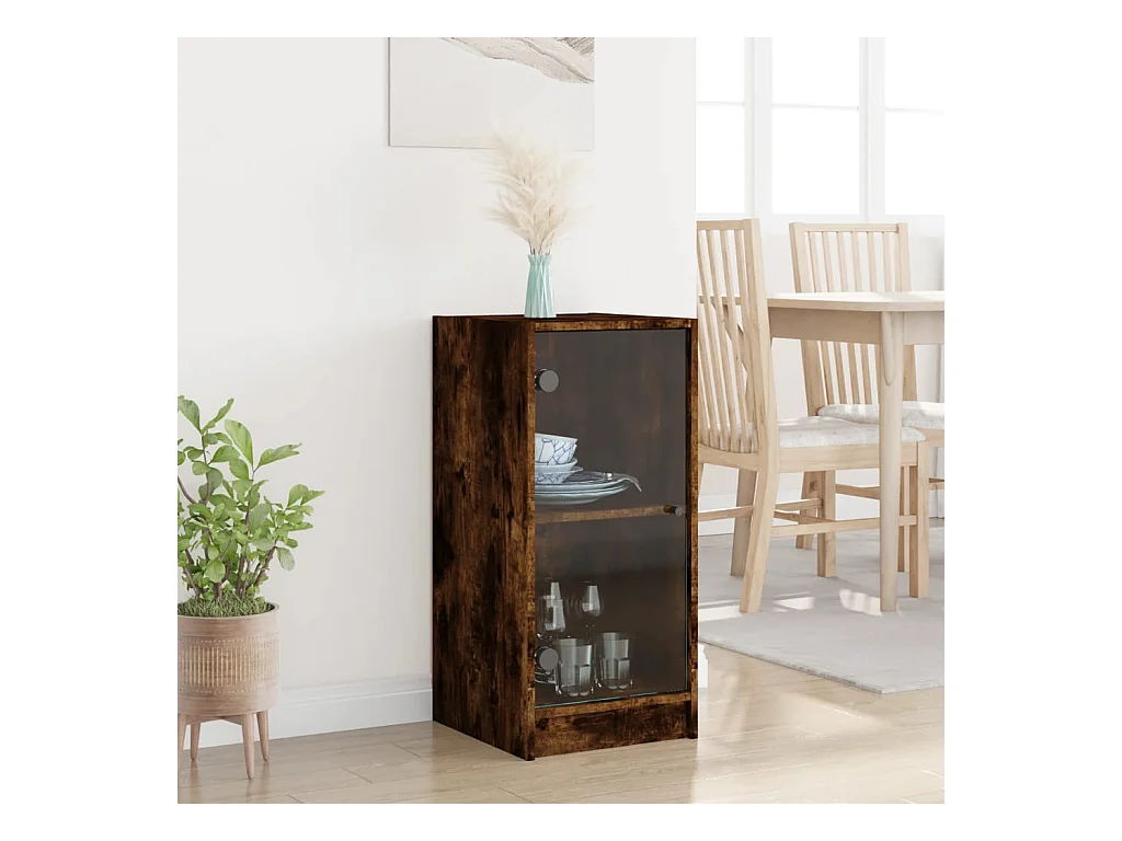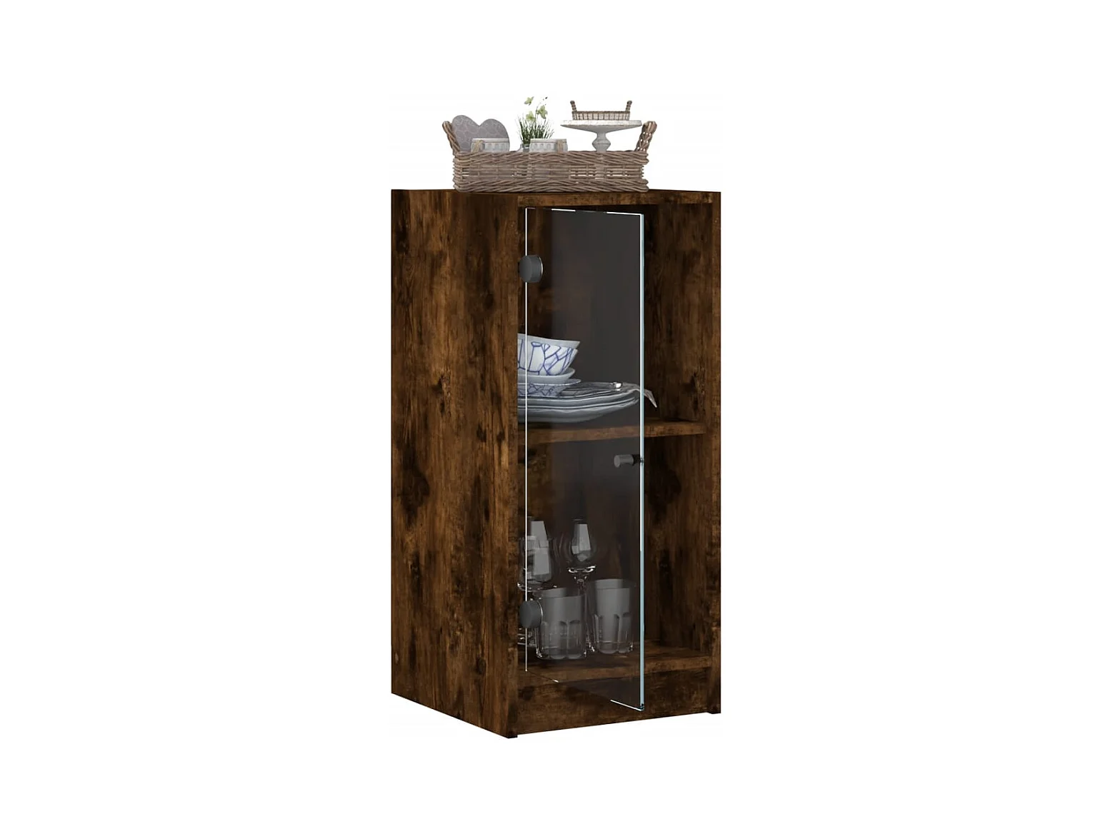 Armoire latérale avec portes en verre chêne fumé 35x37x75,5 cm