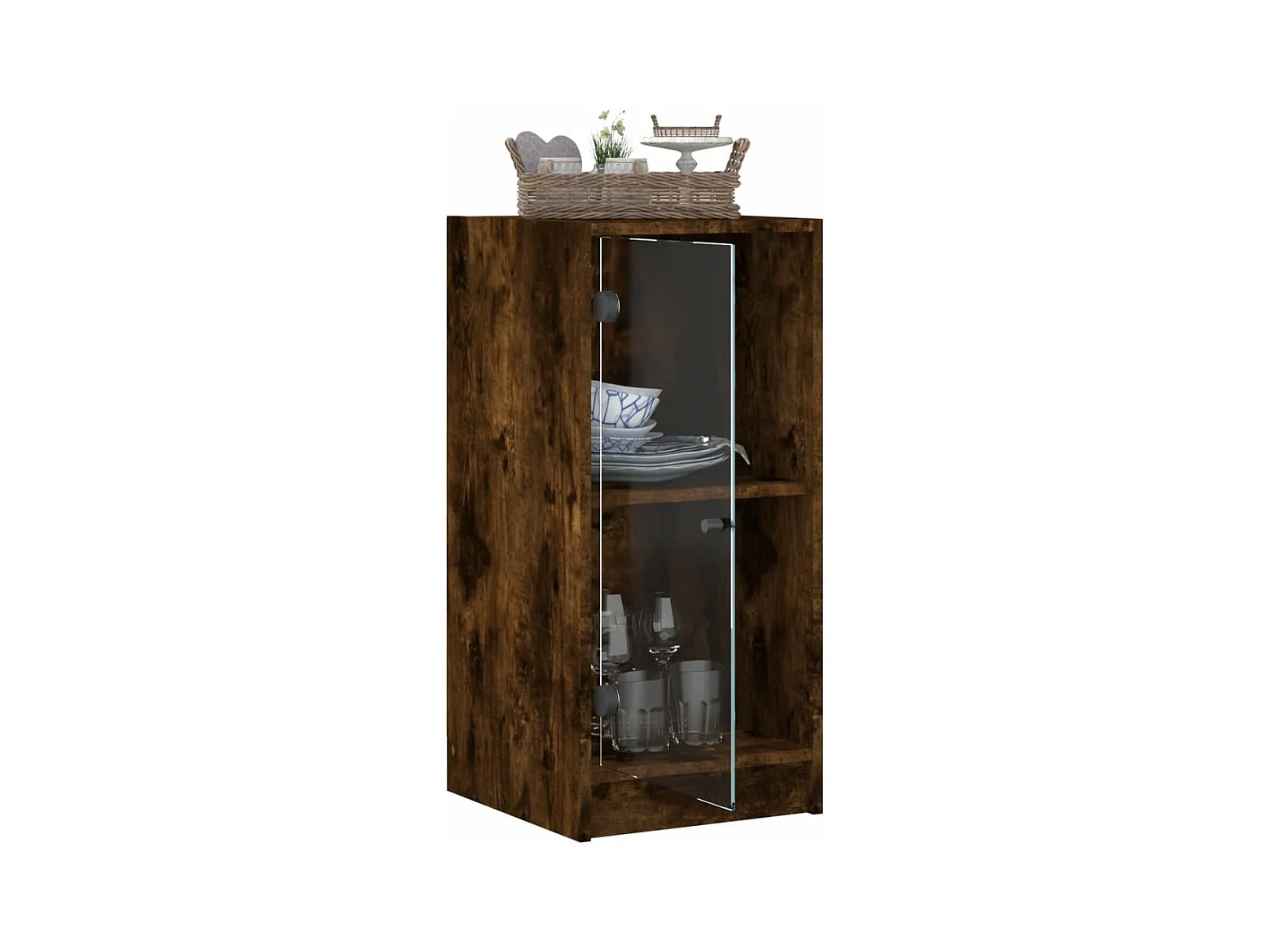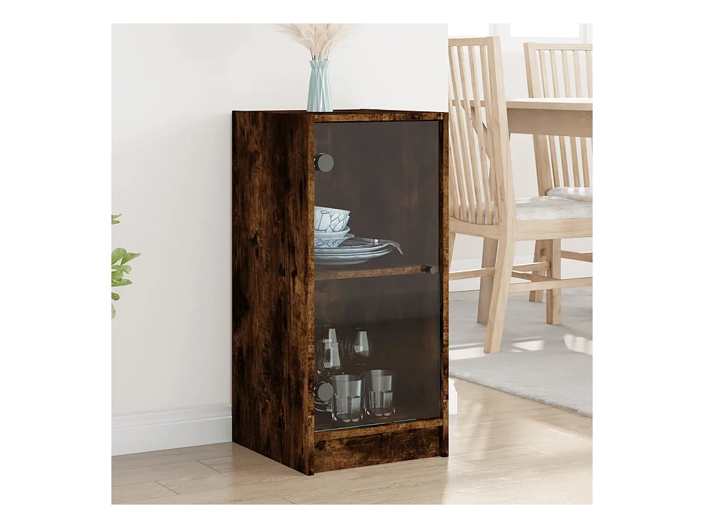 Armoire latérale avec portes en verre chêne fumé 35x37x75,5 cm FR84424