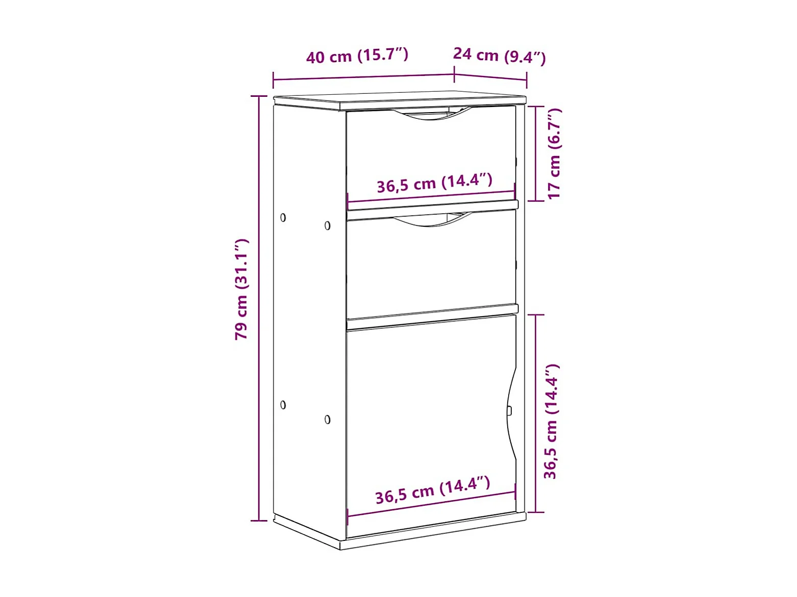 Armoire latérale avec tiroirs ODDA 40x24x79 cm bois massif pin