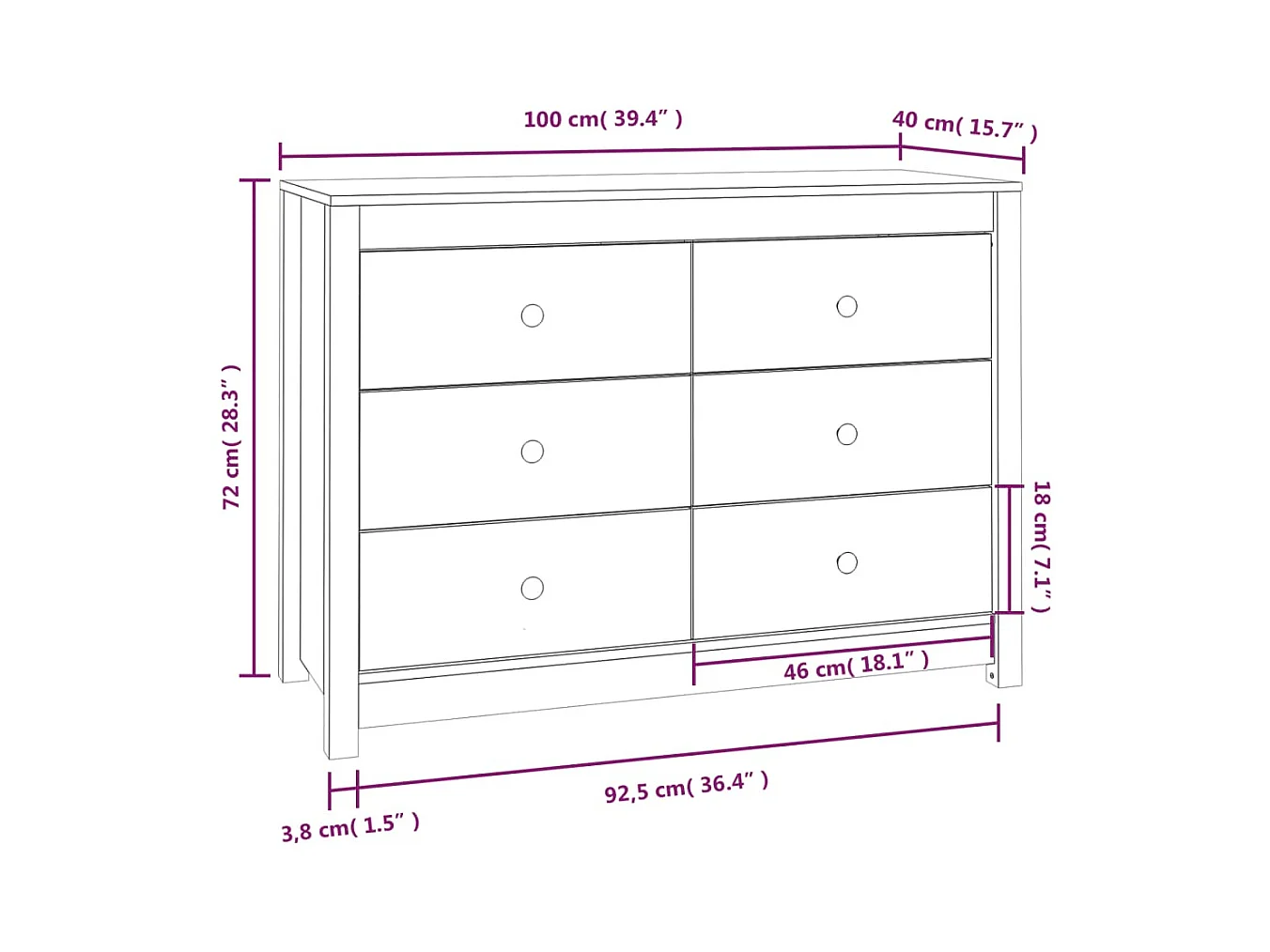 Armoire latérale Blanc 100x40x72 cm Bois de pin massif