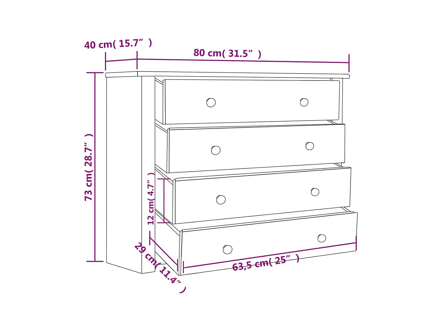 Armoire latérale Blanc 80x40x73 cm Pin Assortiment Panama