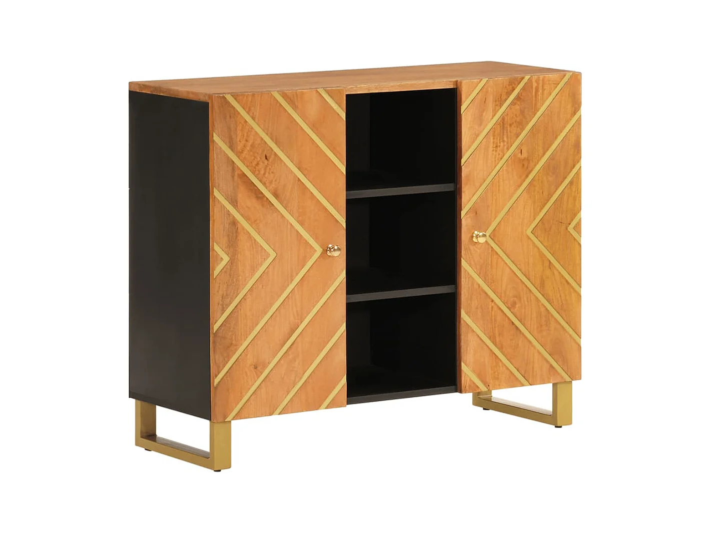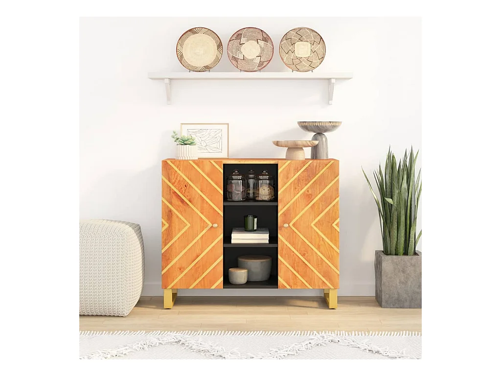 Armoire latérale marron et noir 90x33,5x75 cm bois de manguier