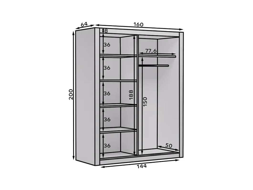 Armoire chambre adulte DIVA 160cm – 2 portes coulissantes-Blanc
